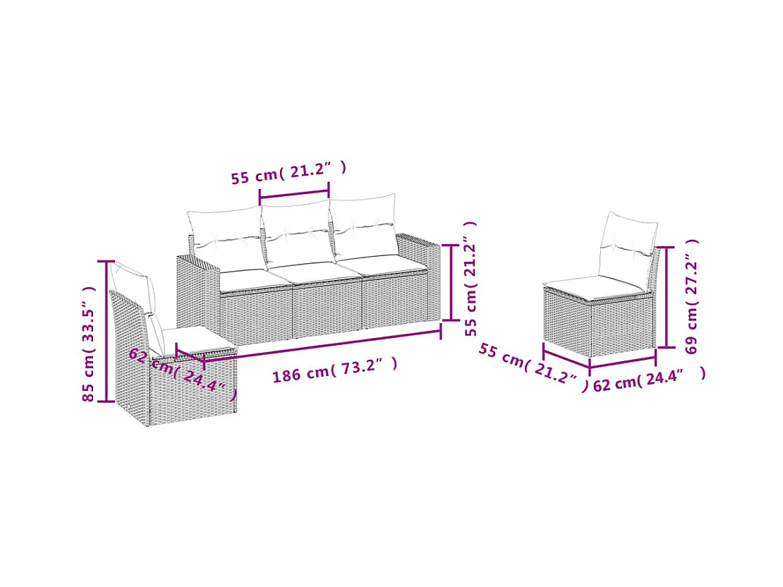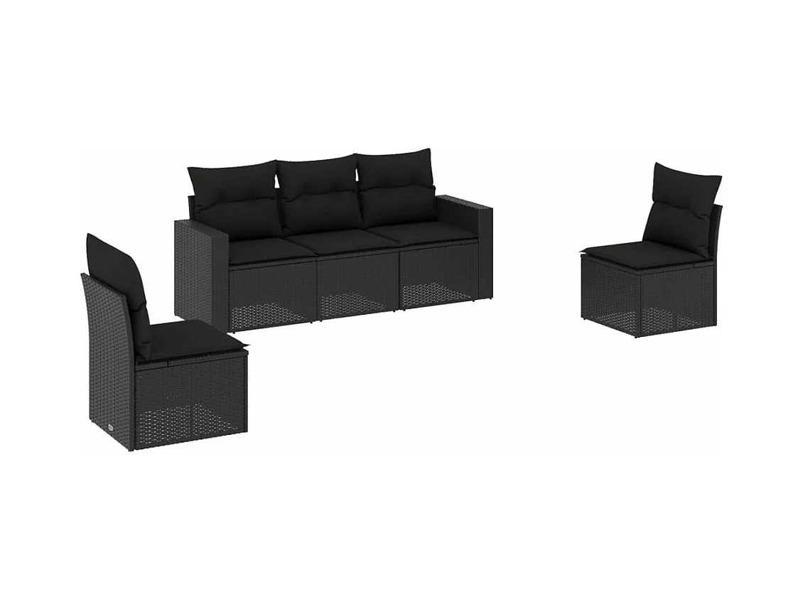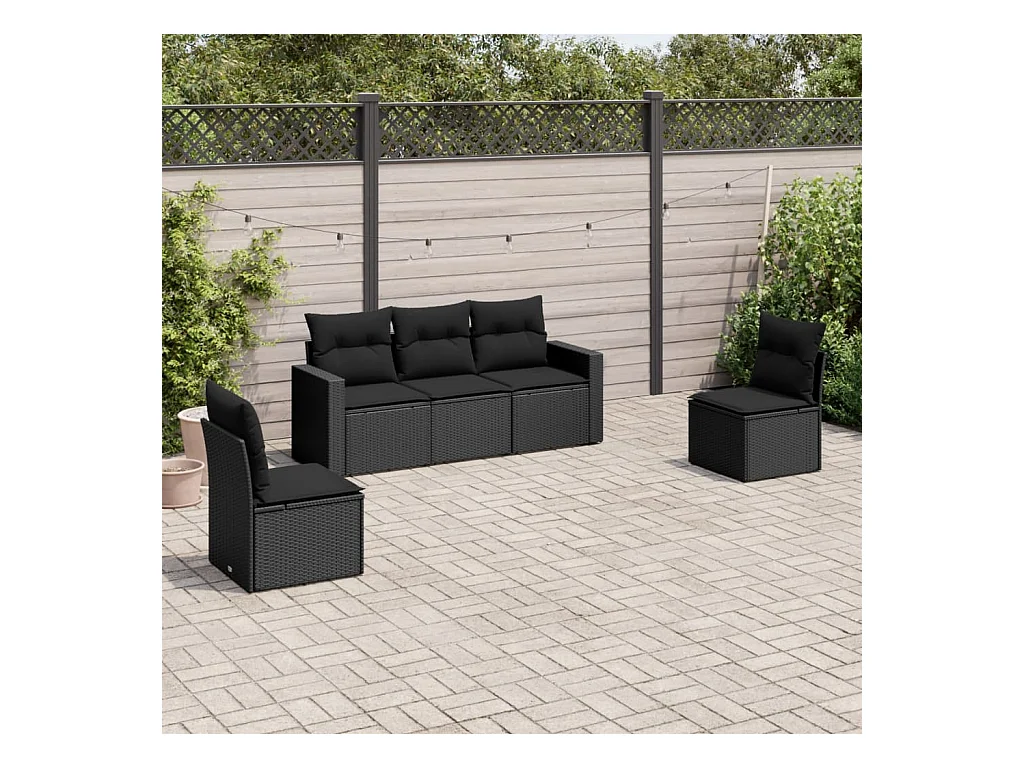 Salon de jardin 5 pcs avec coussins noir résine tressée FR61281