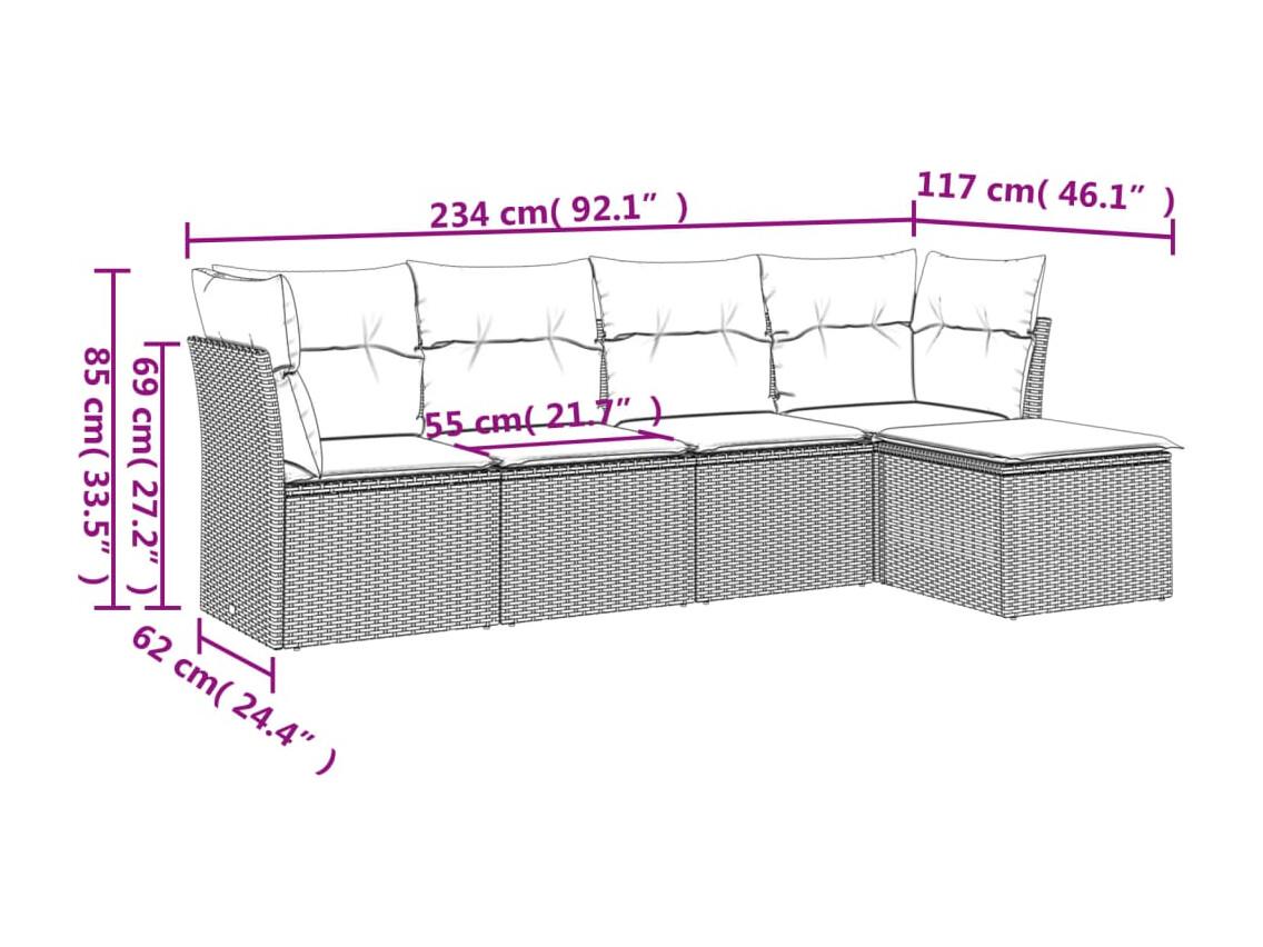 Salon de jardin 5 pcs avec coussins noir résine tressée FR71540