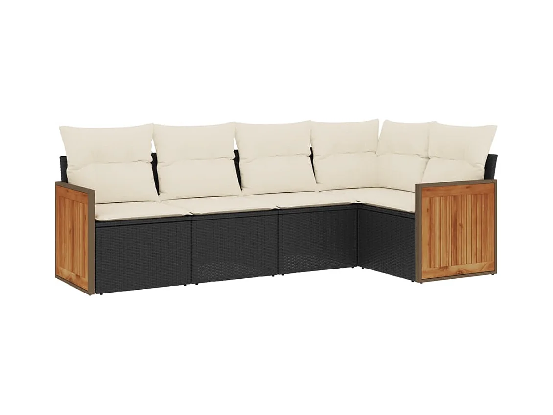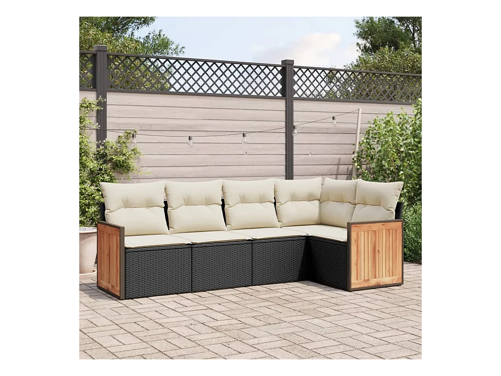 Salon de jardin 5 pcs avec coussins noir résine tressée FR78241