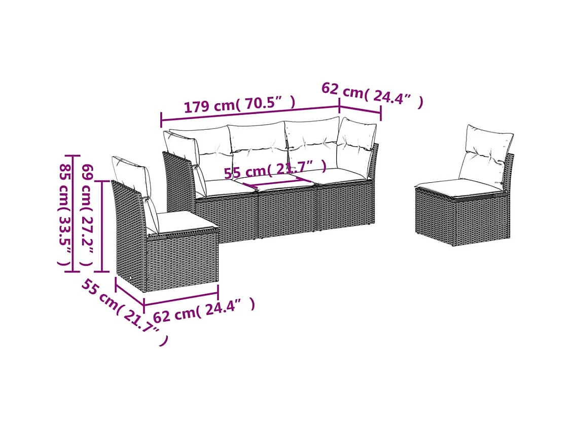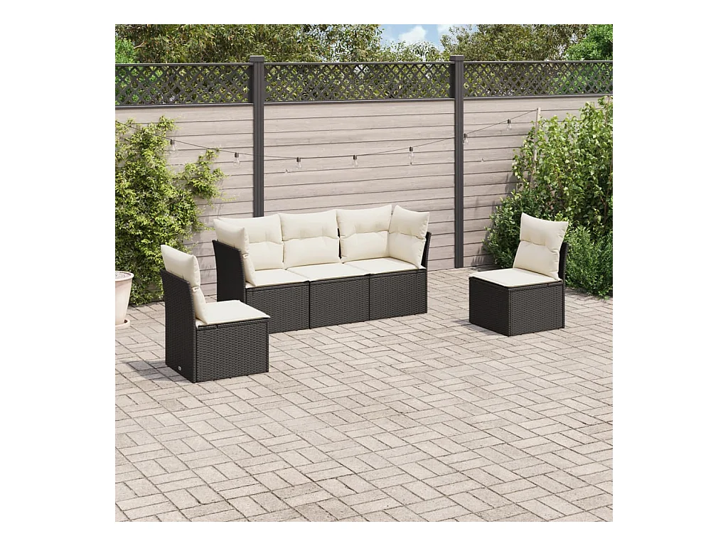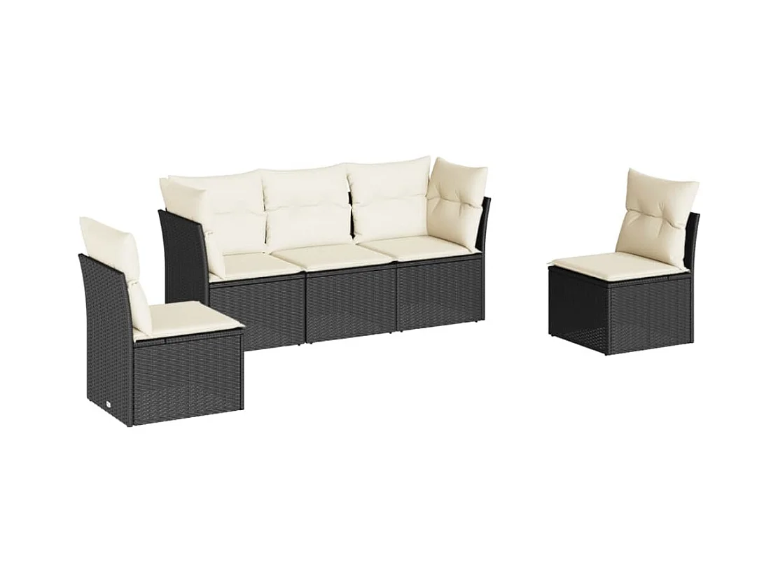 Salon de jardin 5 pcs avec coussins noir résine tressée BE90766