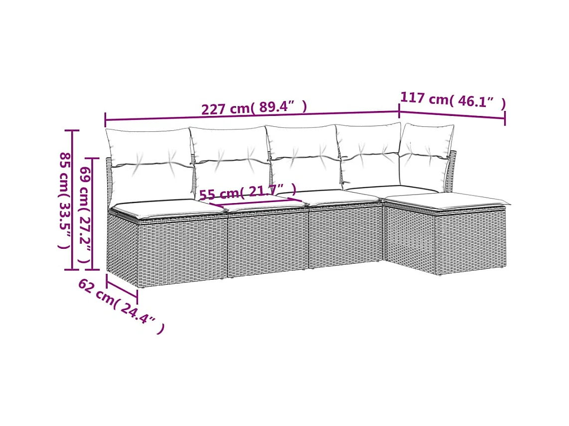 Salon de jardin 5 pcs avec coussins noir résine tressée BE27586