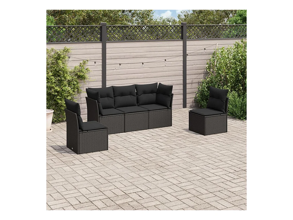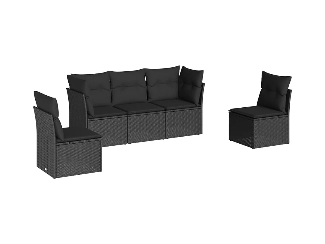 Salon de jardin 5 pcs avec coussins noir résine tressée BE63422