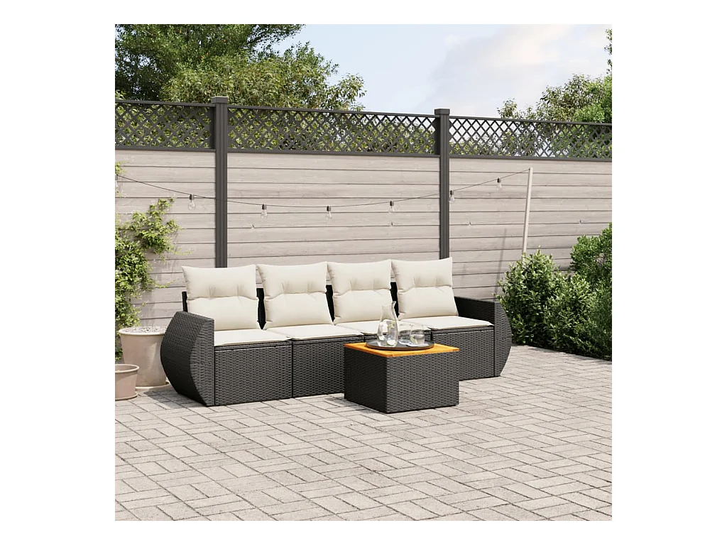Salon de jardin 5 pcs avec coussins noir résine tressée BE63628