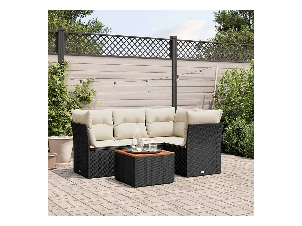 Salon de jardin 5 pcs avec coussins noir résine tressée BE63961