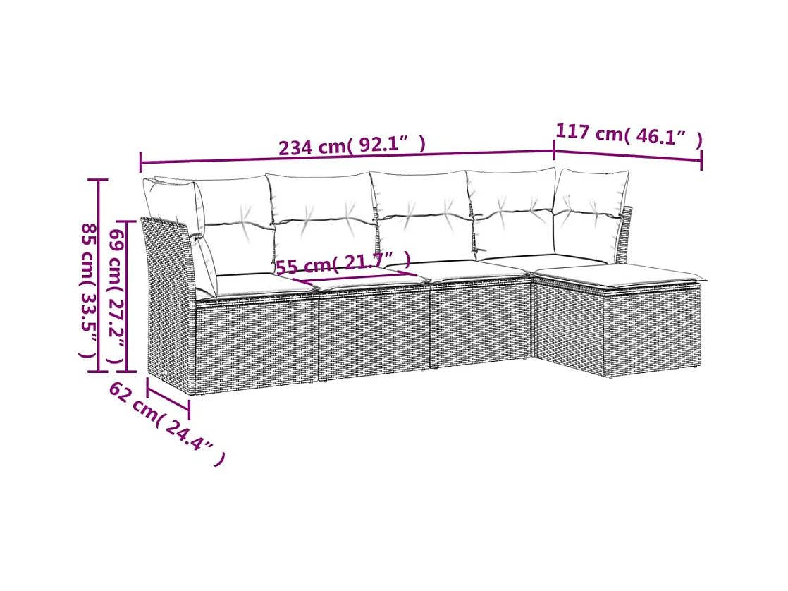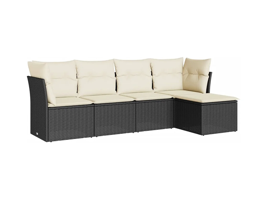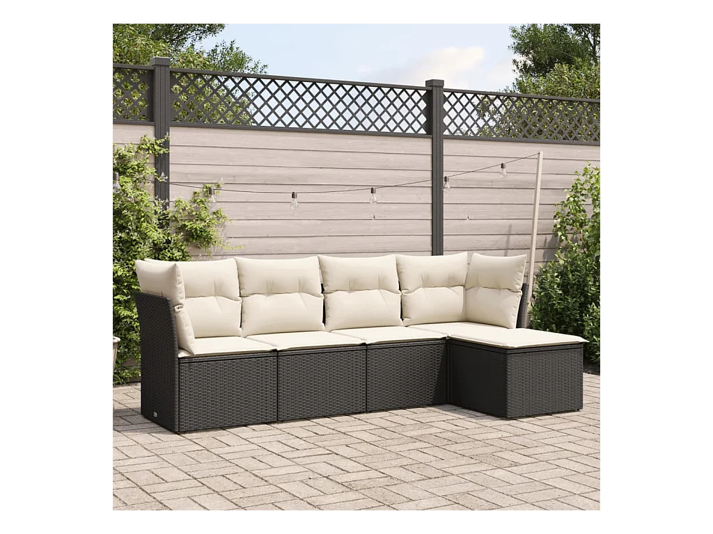 Salon de jardin 5 pcs avec coussins noir résine tressée BE31149