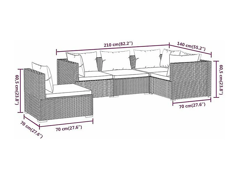 Salon de jardin 5 pcs avec coussins Résine tressée Marron