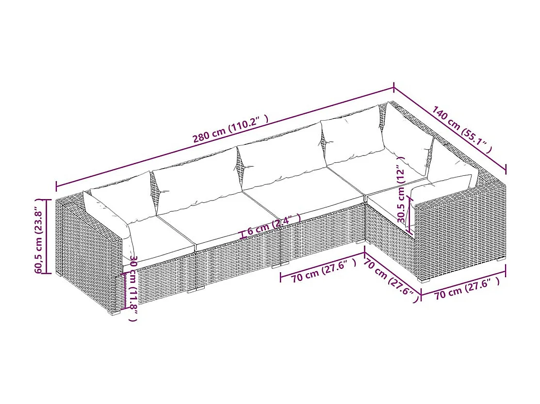 Salon de jardin 5 pcs avec coussins Résine tressée Marron 26