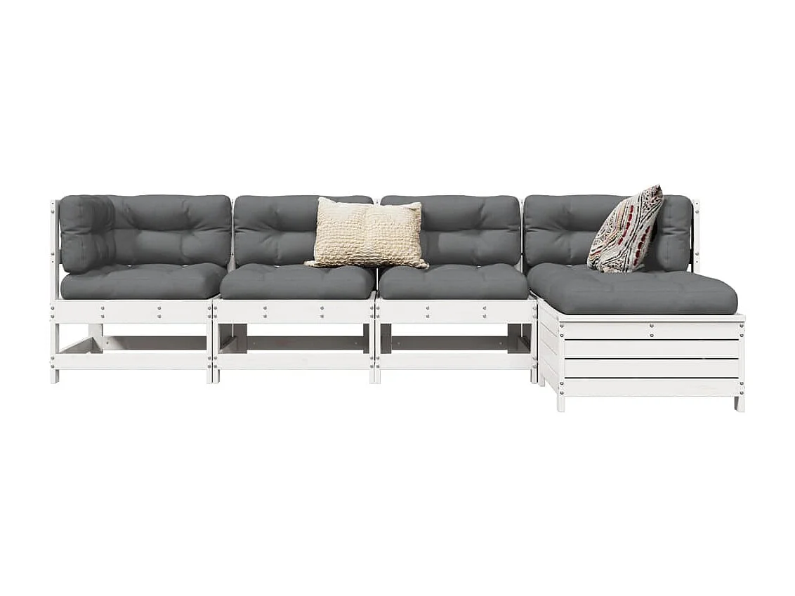 Salon de jardin 5 pcs blanc bois massif de pin