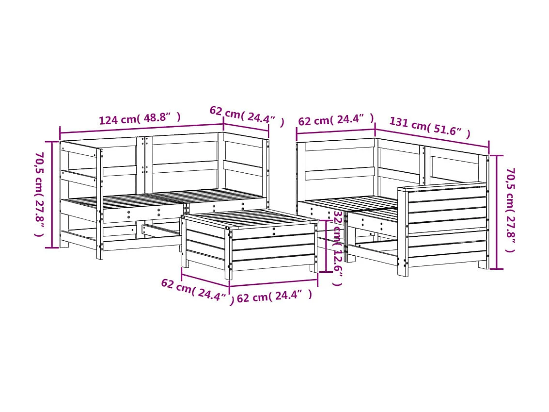 Salon de jardin 5 pcs bois de pin imprégné