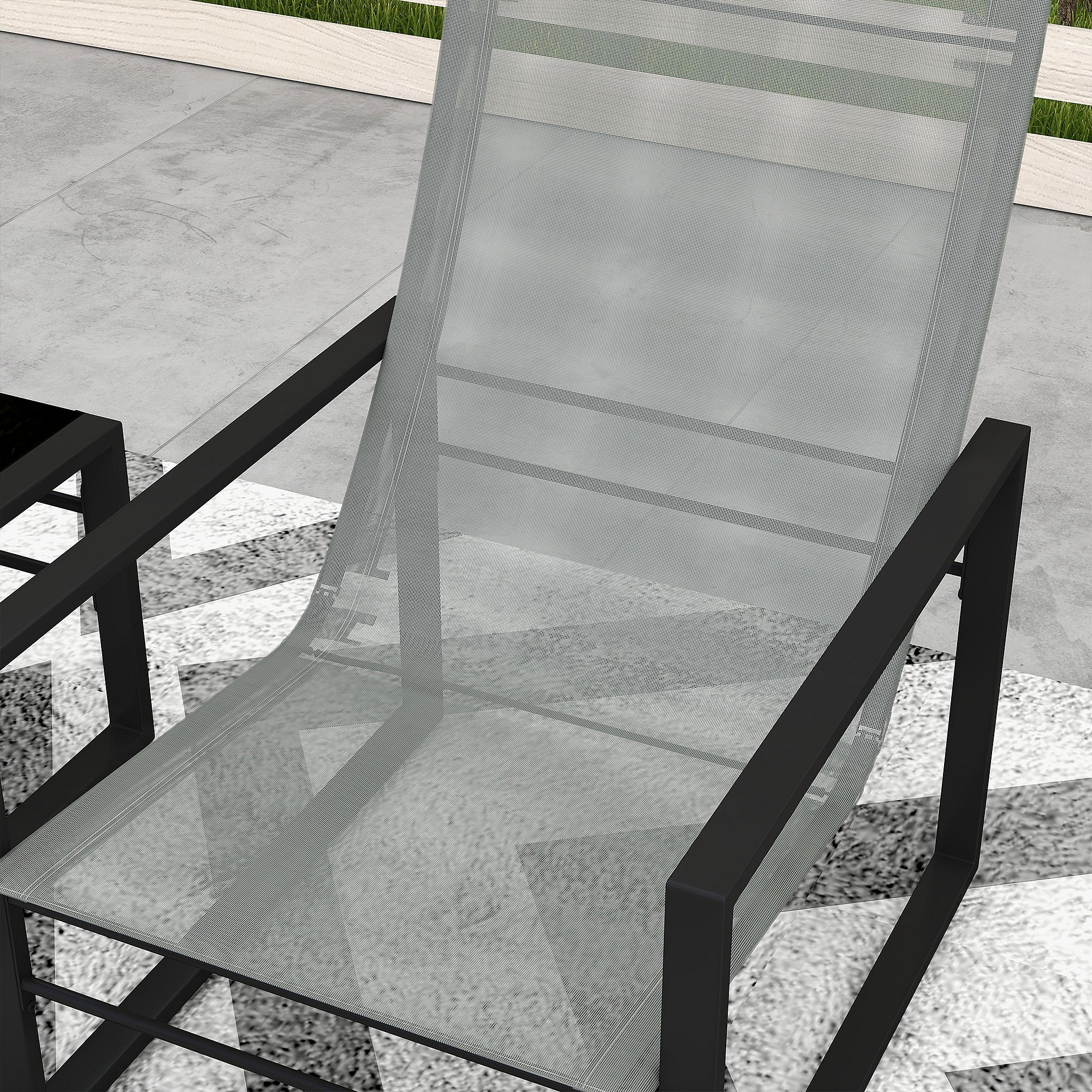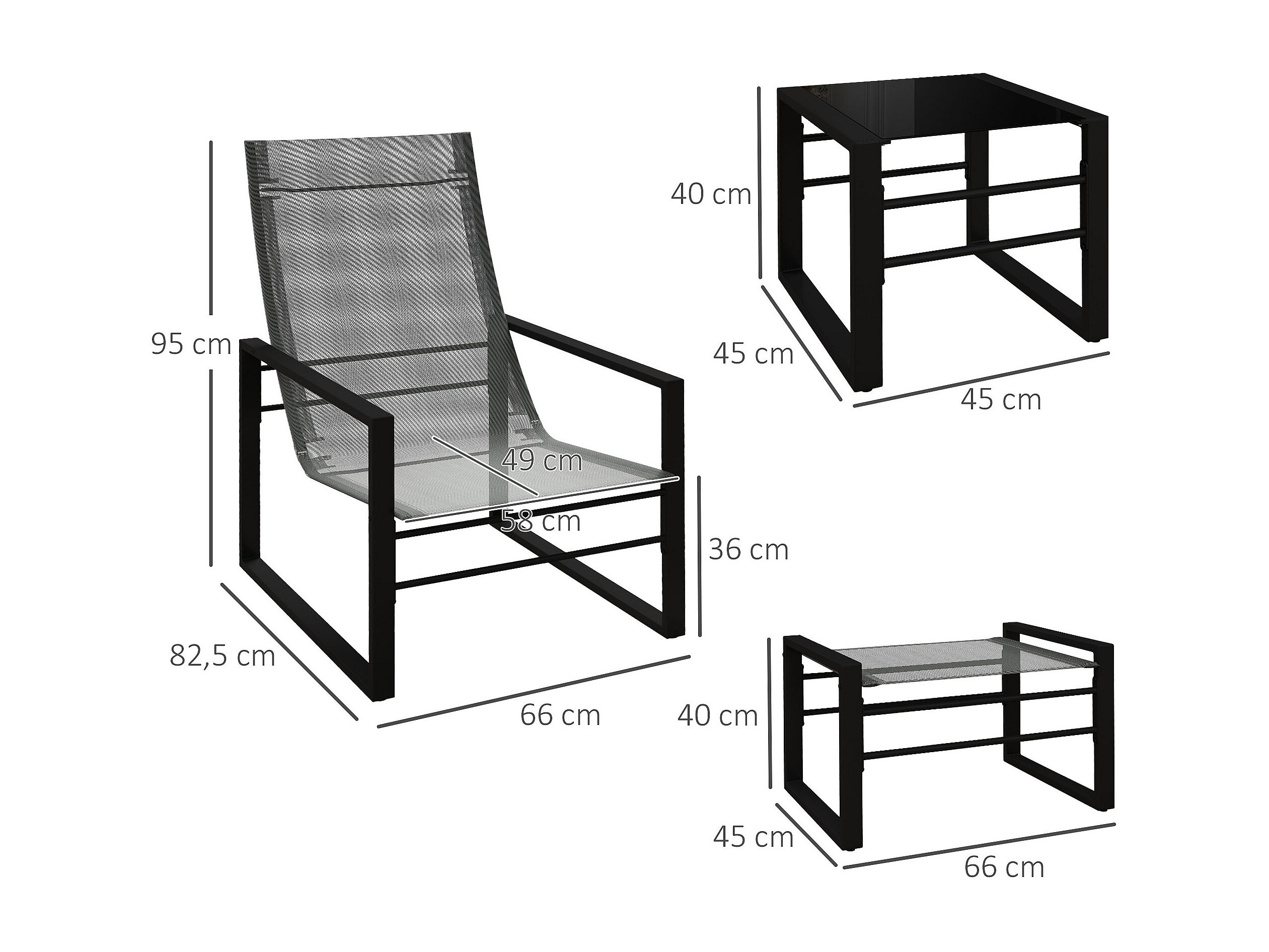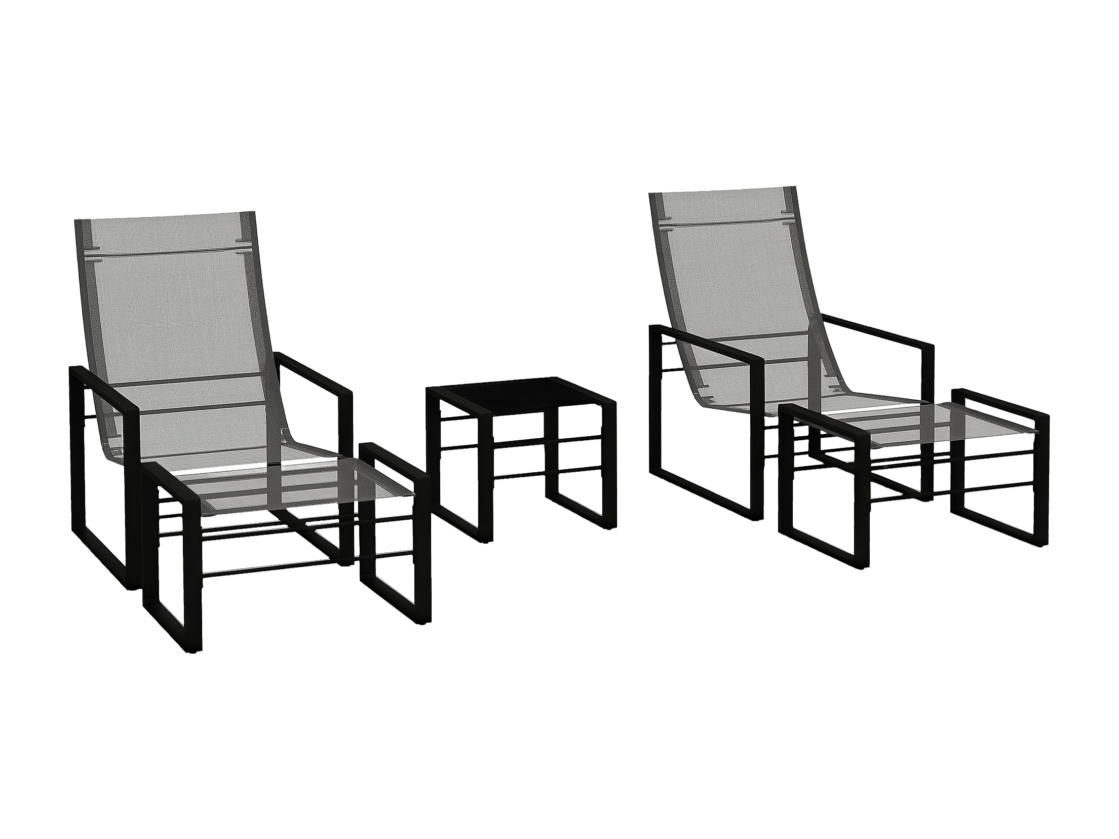 Salon de jardin 5 pièces 2 places métal noir tissu mesh gris