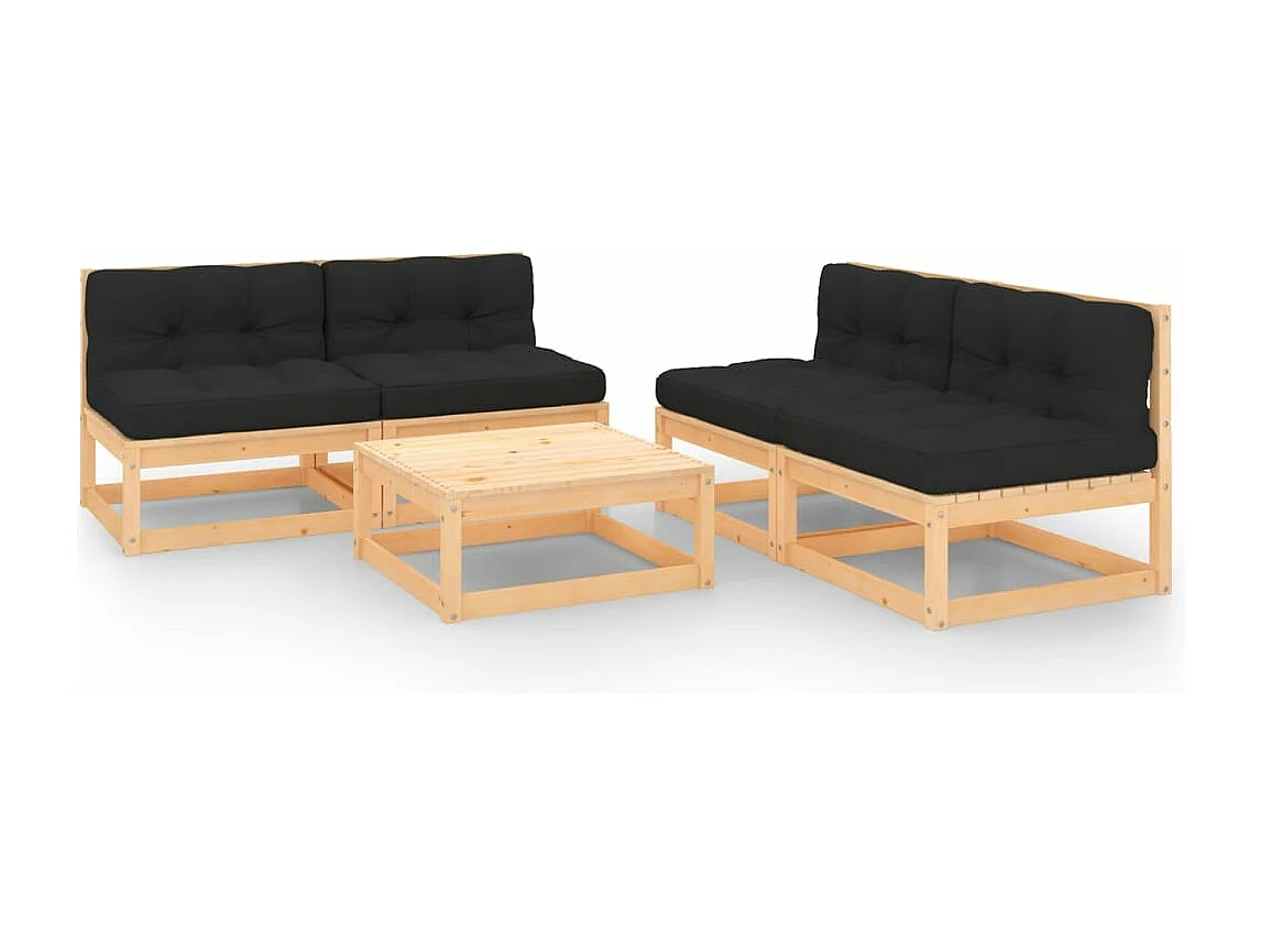 Salon de jardin 5 pièces avec coussins Bois de pin massif
