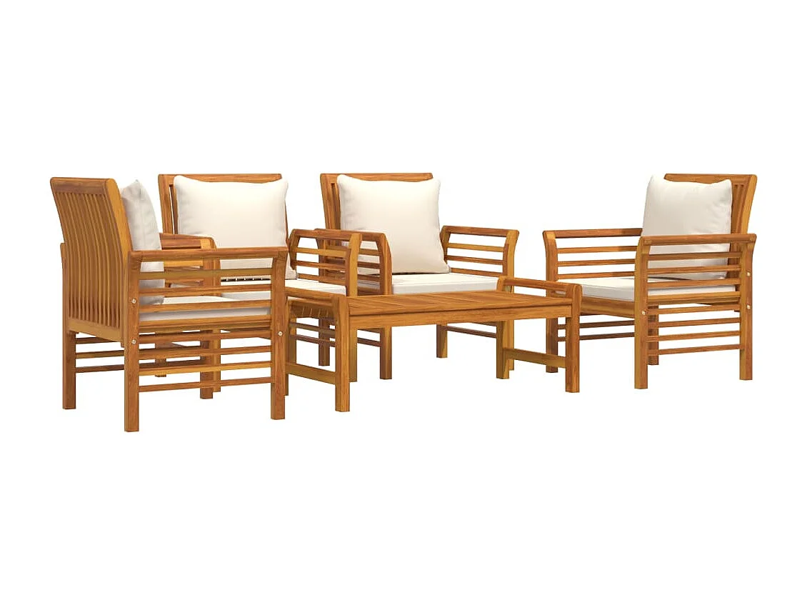 Salon de jardin 5 pièces avec coussins Bois massif d'acacia