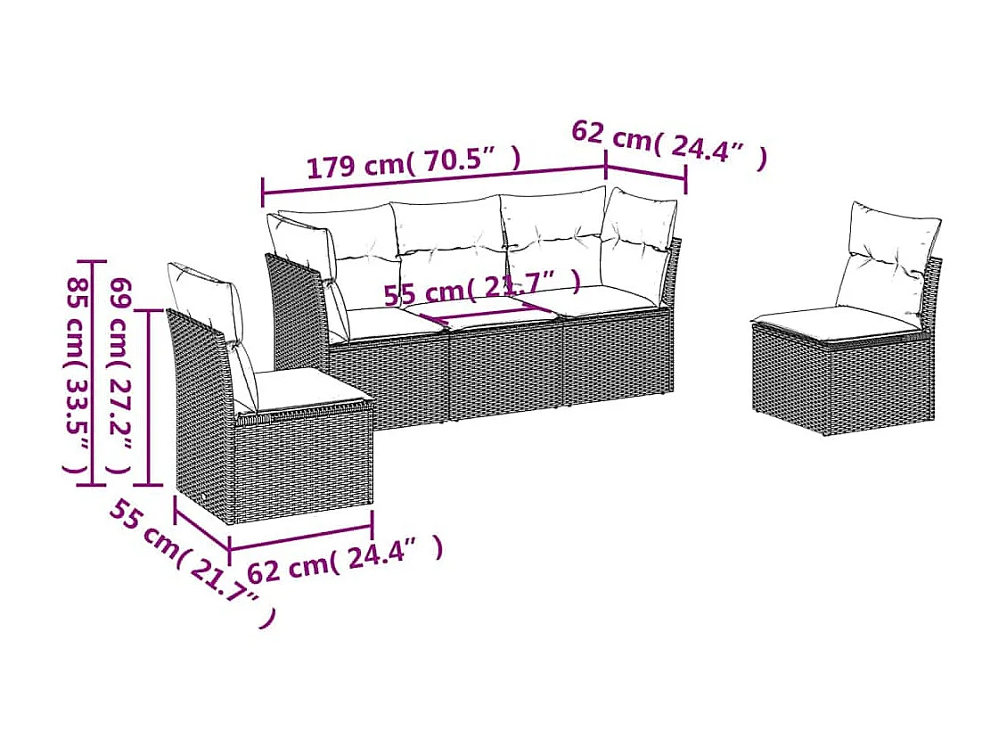 Salon de jardin 5 pièces avec coussins gris clair résine tressée