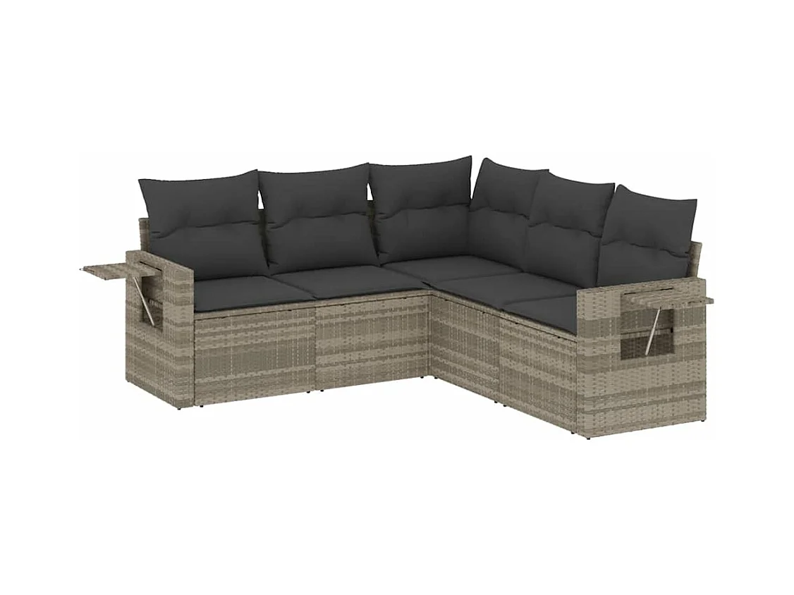 Salon de jardin 5 pièces avec coussins gris clair résine tressée
