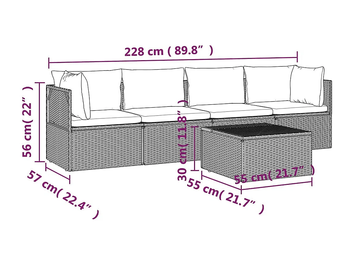 Salon de jardin 5 pièces avec coussins Gris Résine tressée