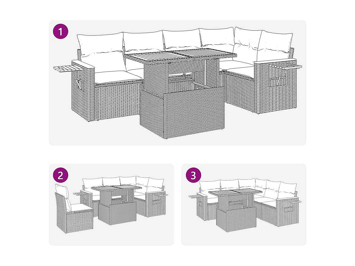 Salon de jardin 5 pièces avec coussins gris résine tressée acacia