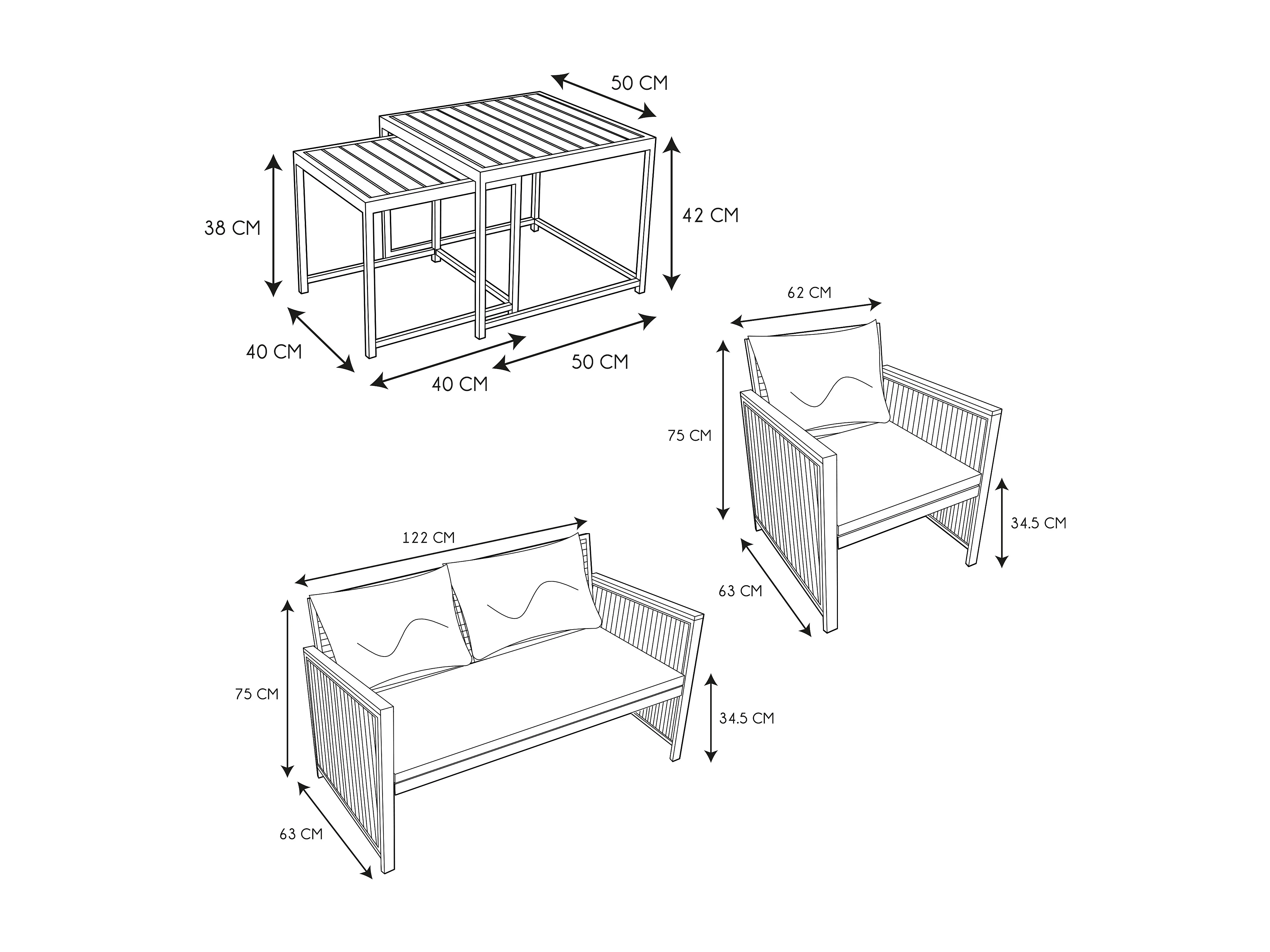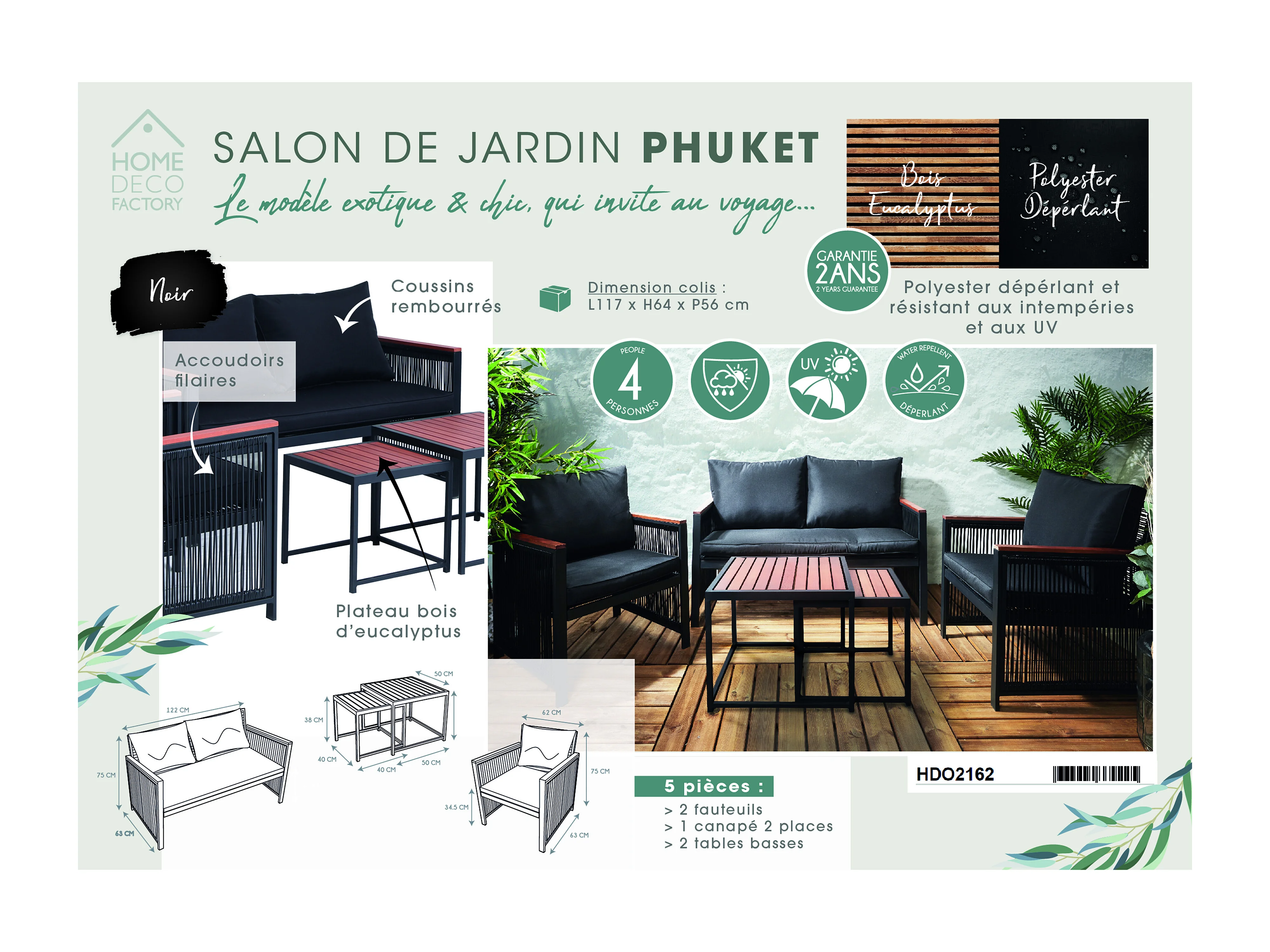 Salon de Jardin 5 Pièces "Phuket" 122cm Noir