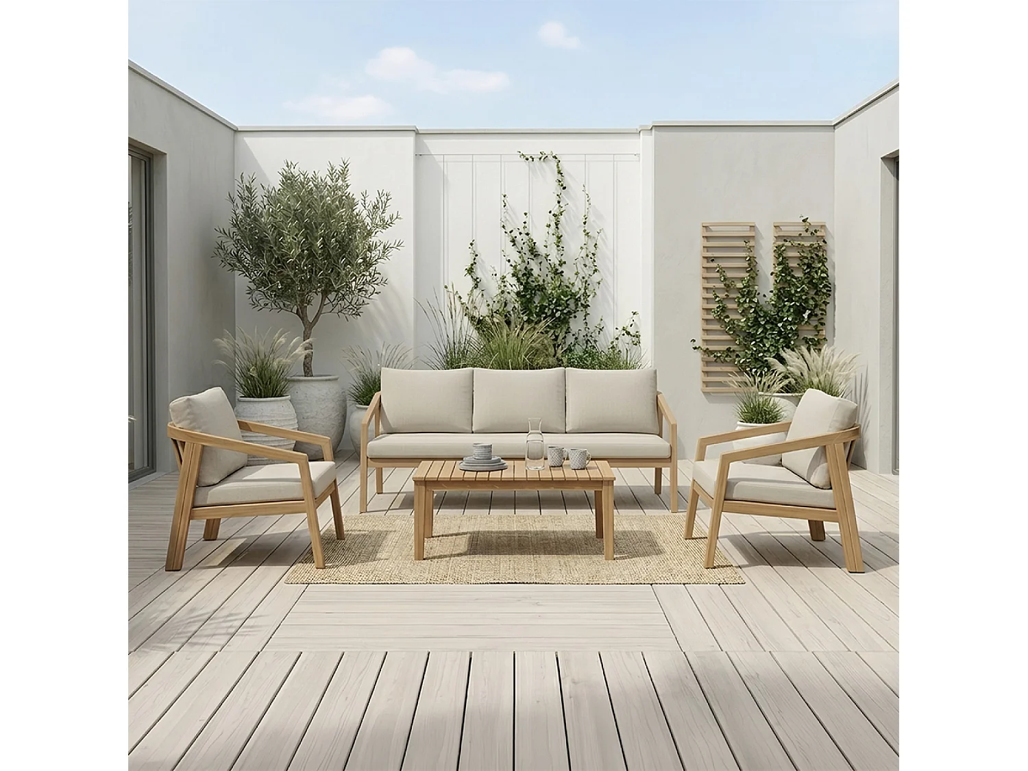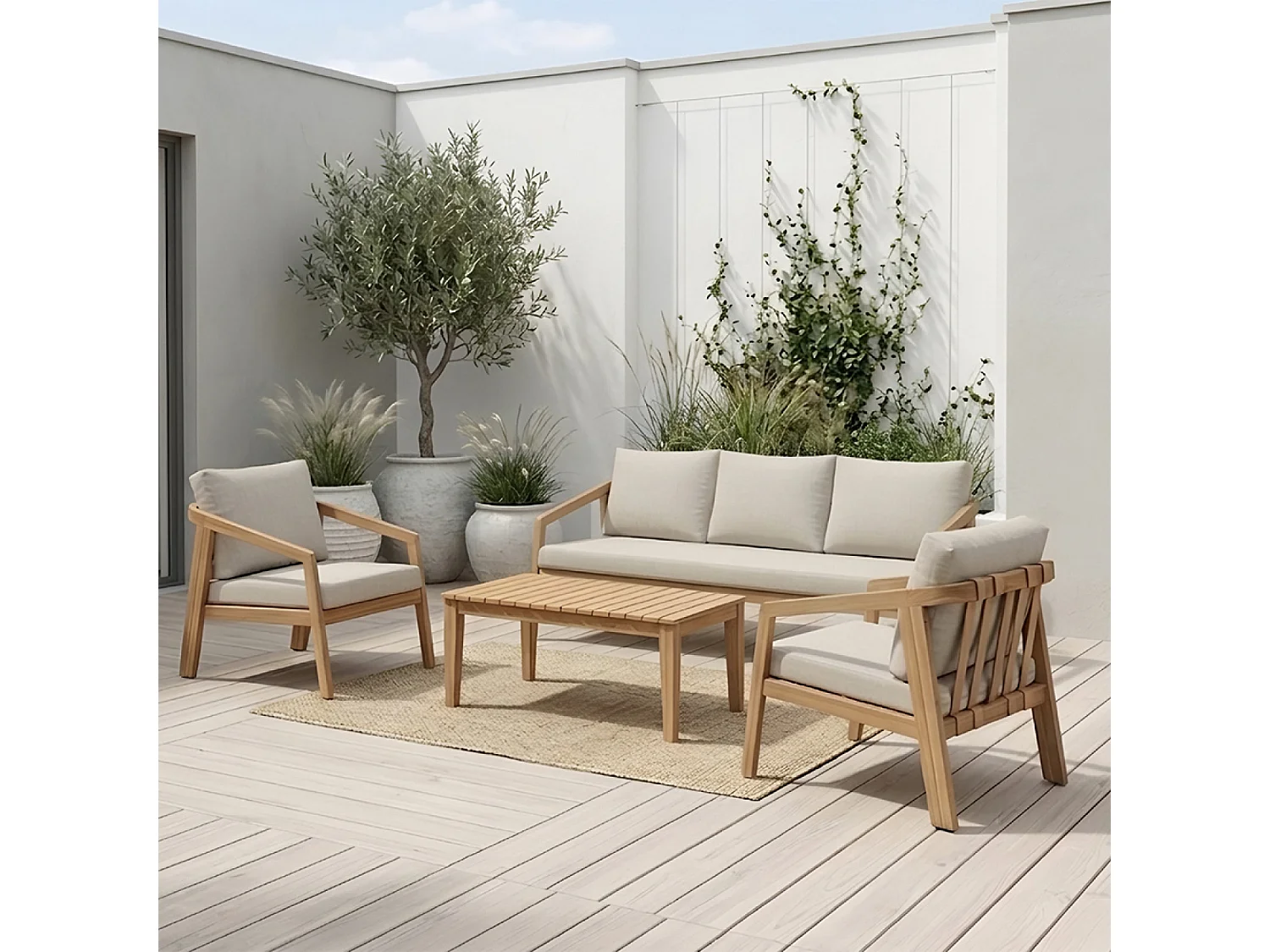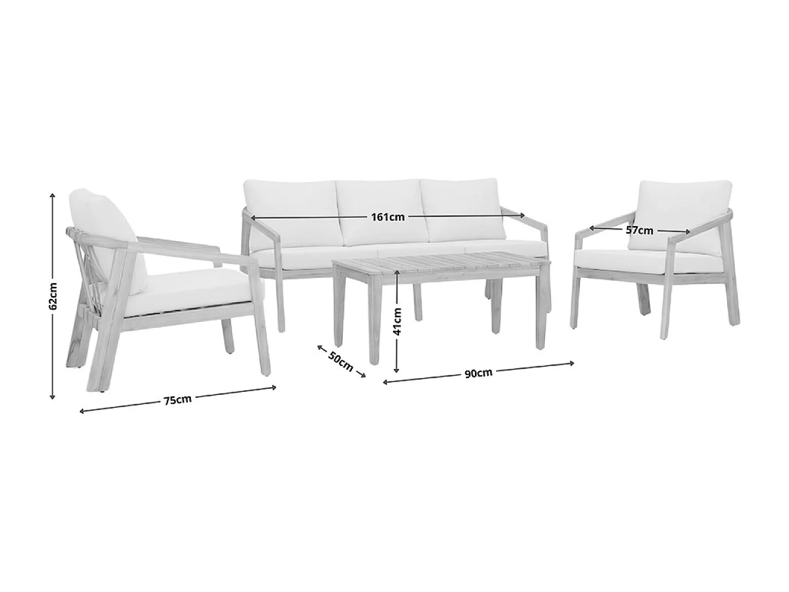 Salon de jardin 5 places en acacia SAPA