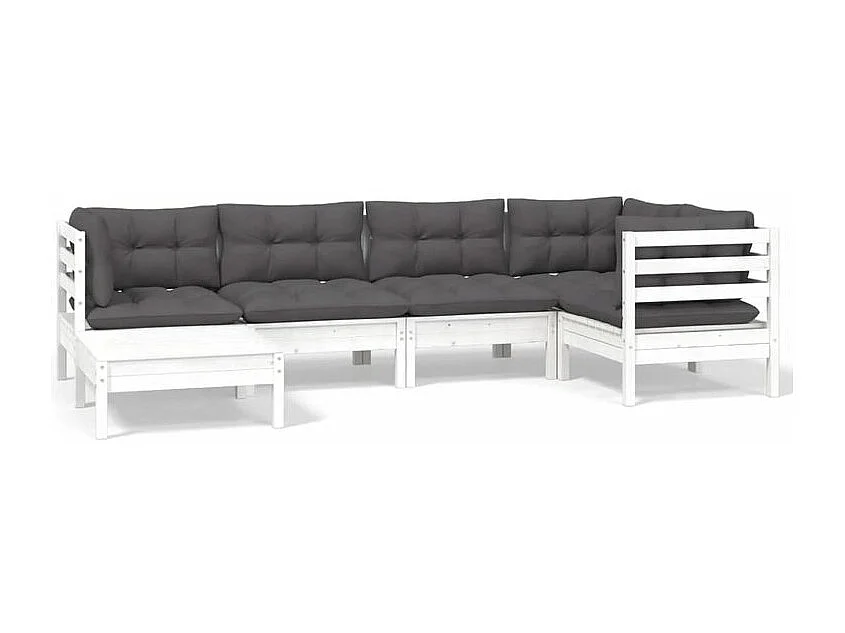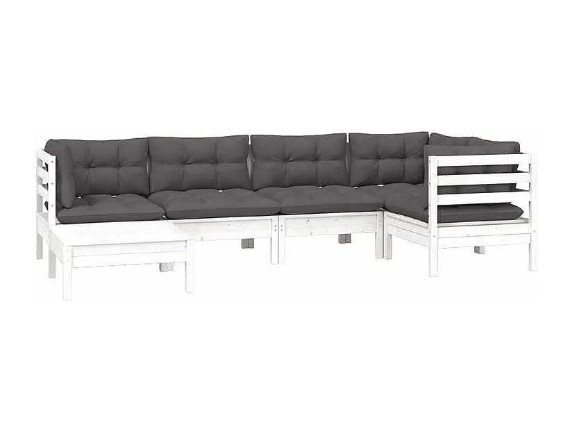 Salon de jardin 6 pcs avec coussins blanc bois de pin massif