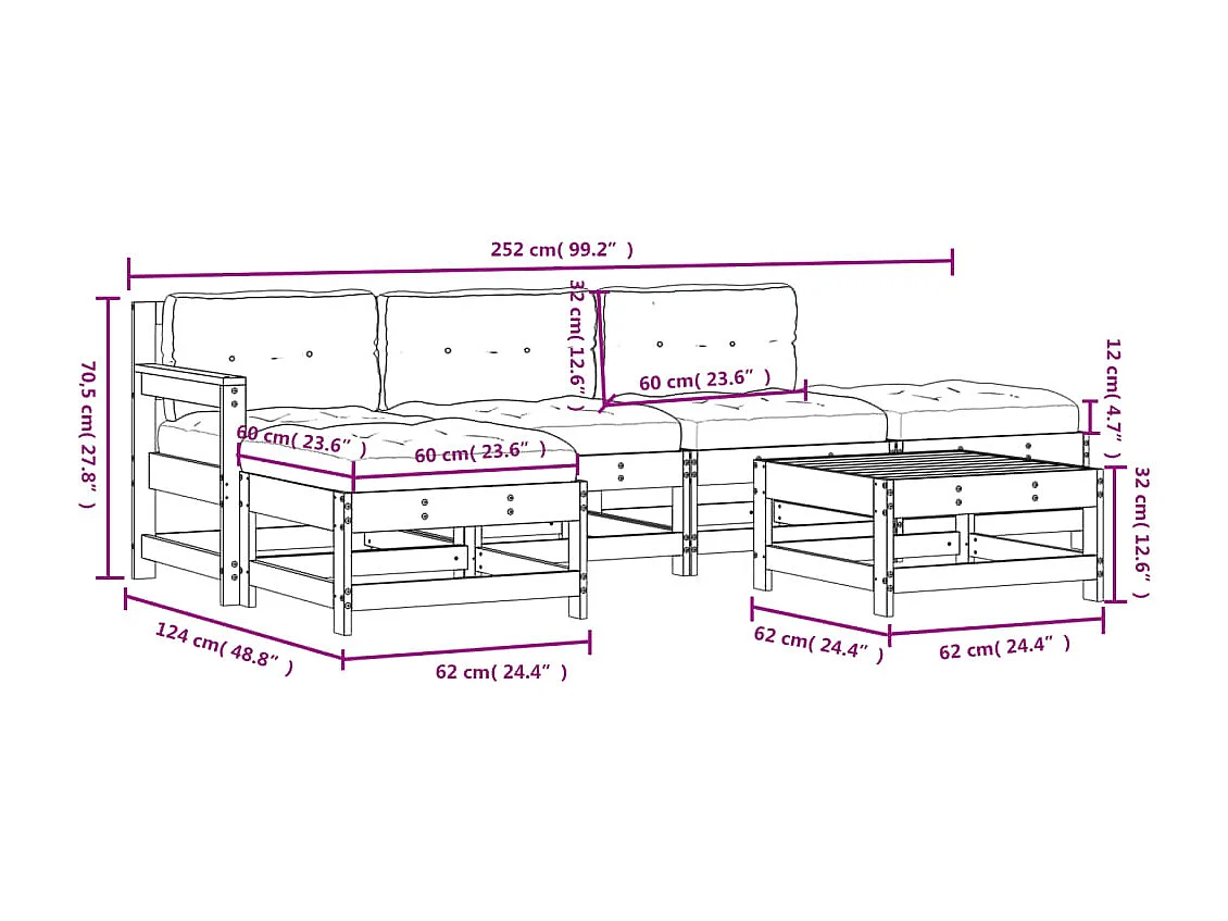 Salon de jardin 6 pcs avec coussins bois massif Douglas