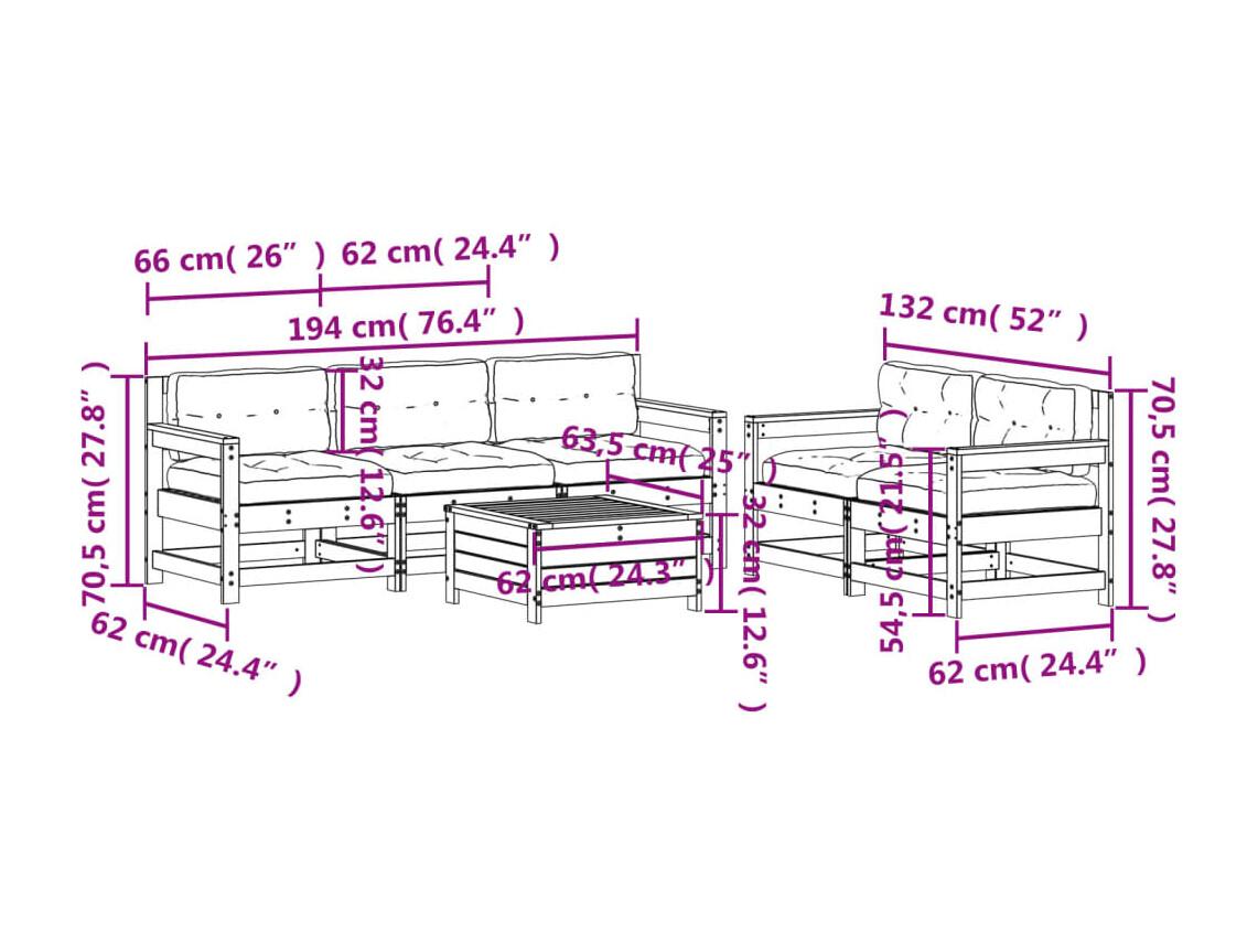 Salon de jardin 6 pcs avec coussins bois massif Douglas