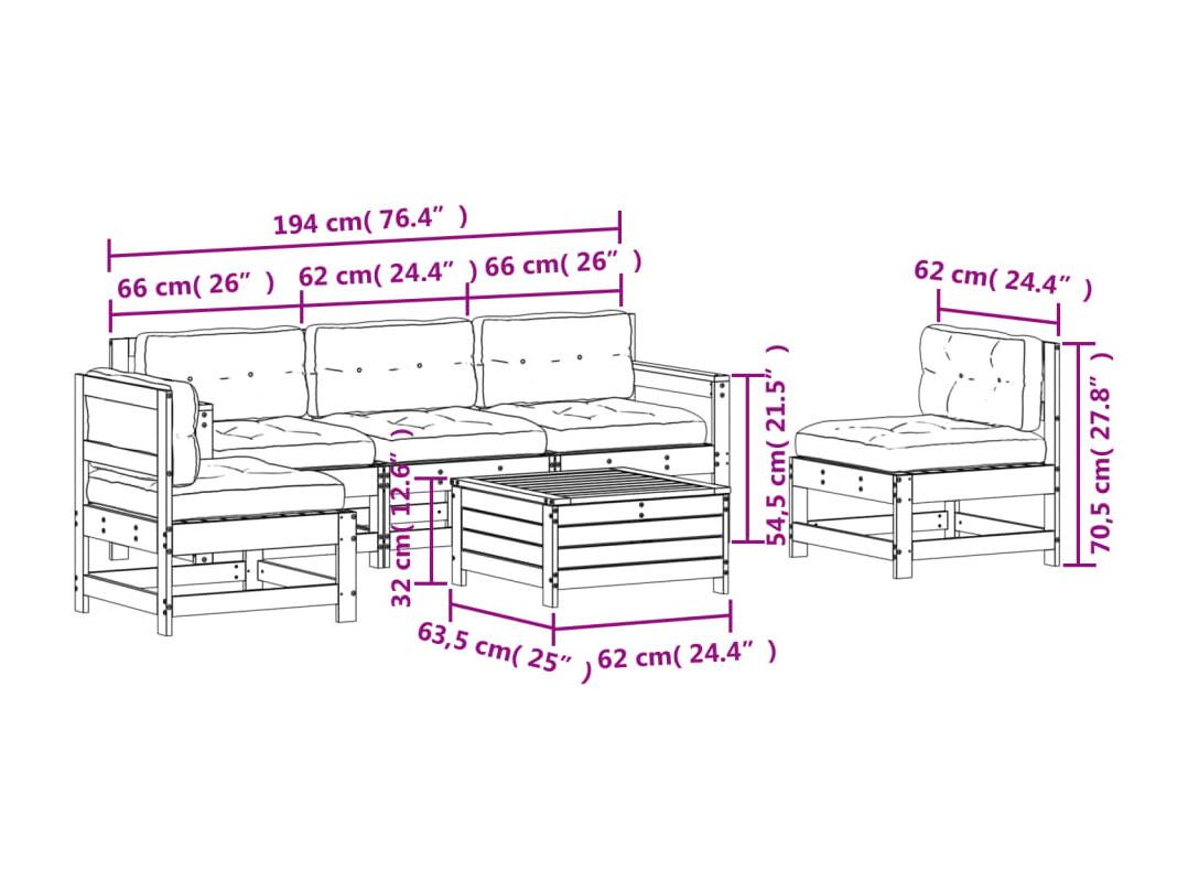 Salon de jardin 6 pcs avec coussins bois massif Douglas
