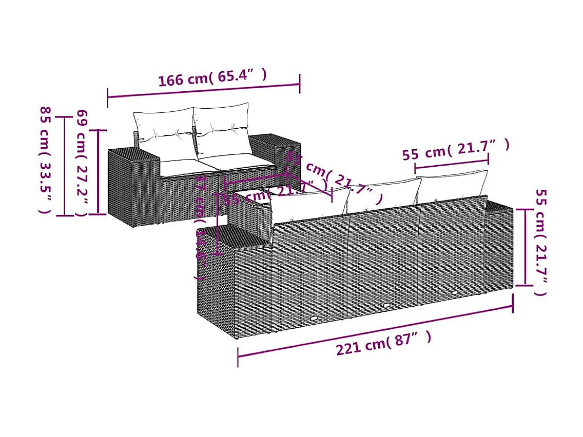 Salon de jardin 6 pcs avec coussins gris clair résine tressée