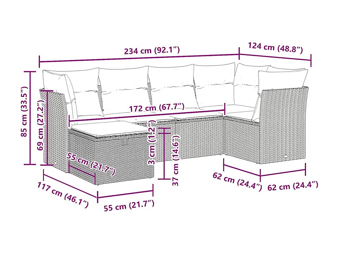 Salon de jardin 6 pcs avec coussins gris clair résine tressée