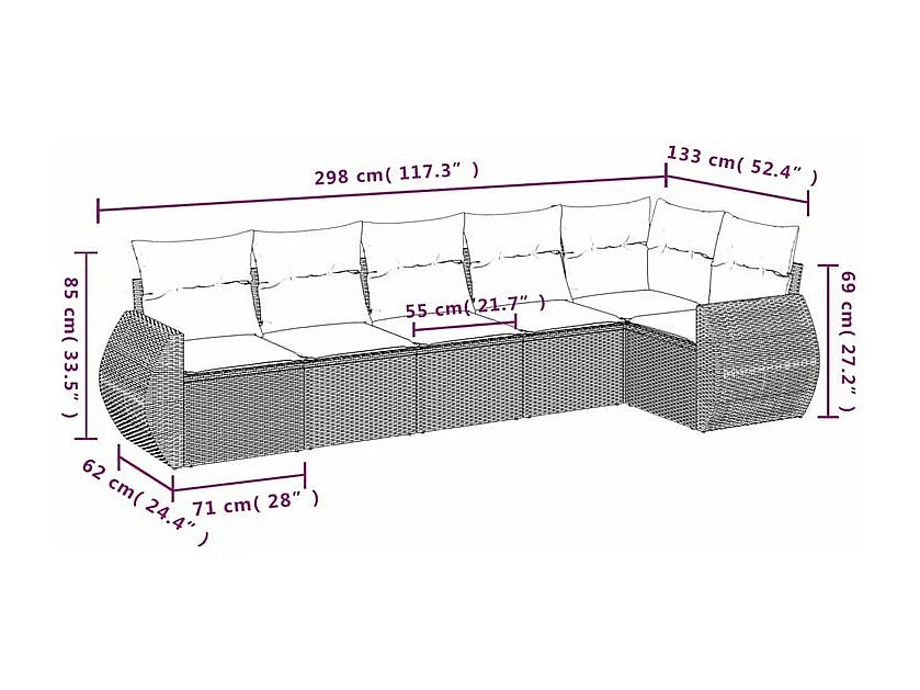 Salon de jardin 6 pcs avec coussins gris clair résine tressée