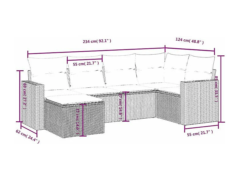 Salon de jardin 6 pcs avec coussins gris clair résine tressée