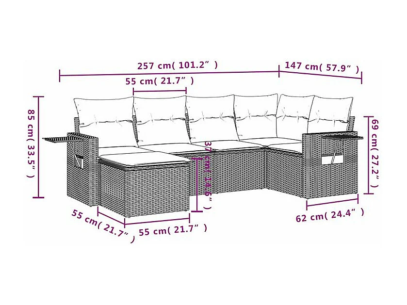 Salon de jardin 6 pcs avec coussins gris clair résine tressée