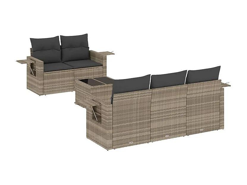 Salon de jardin 6 pcs avec coussins gris clair résine tressée