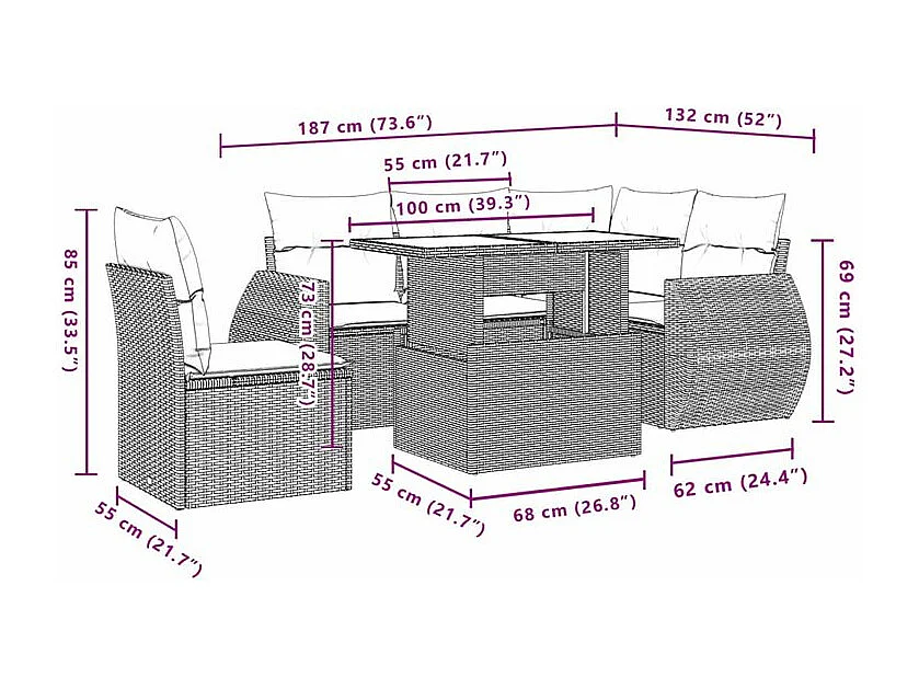 Salon de jardin 6 pcs avec coussins gris clair résine tressée