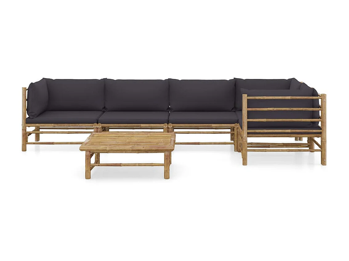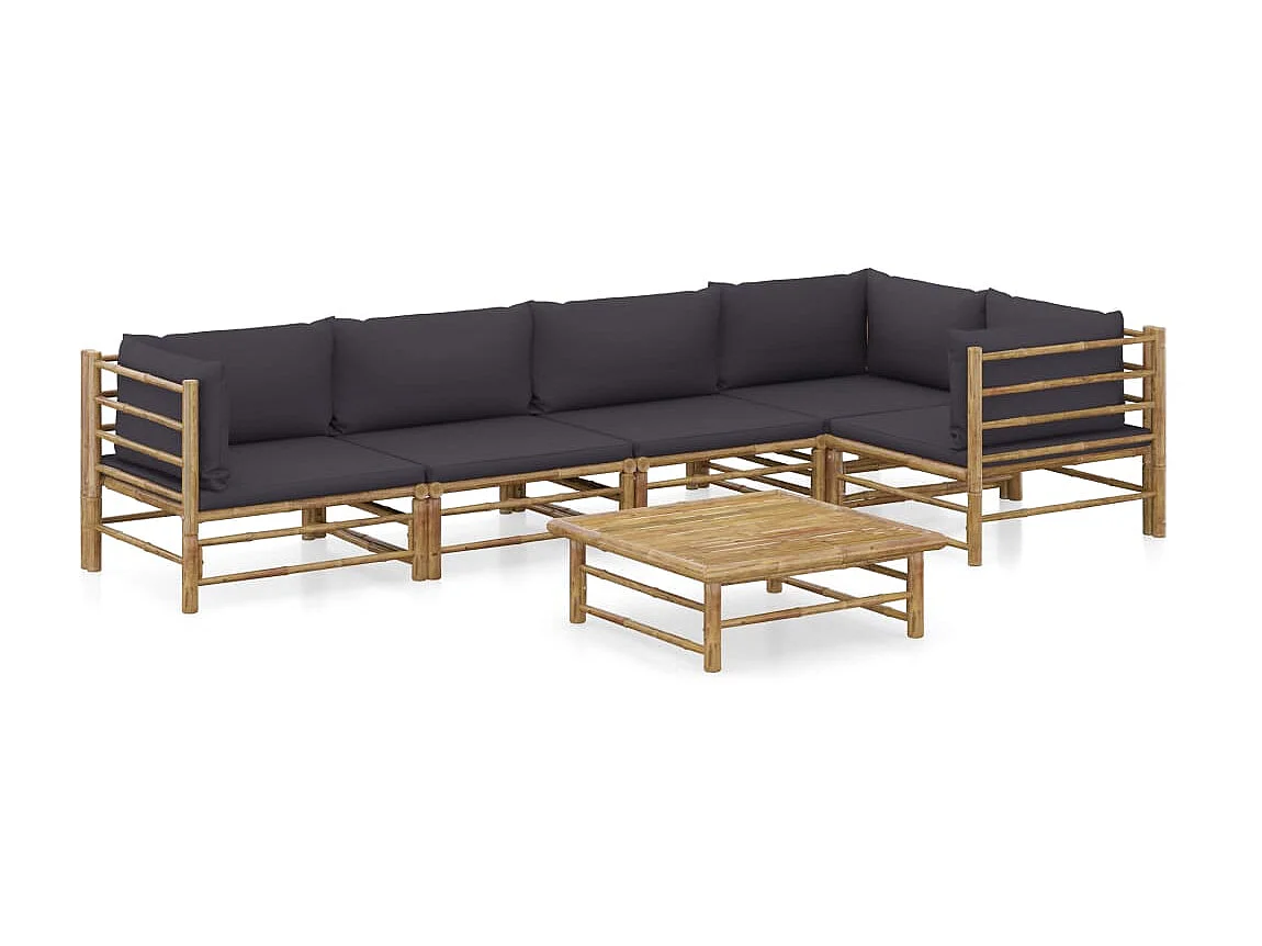 Salon de jardin 6 pcs avec coussins gris foncé Bambou 7