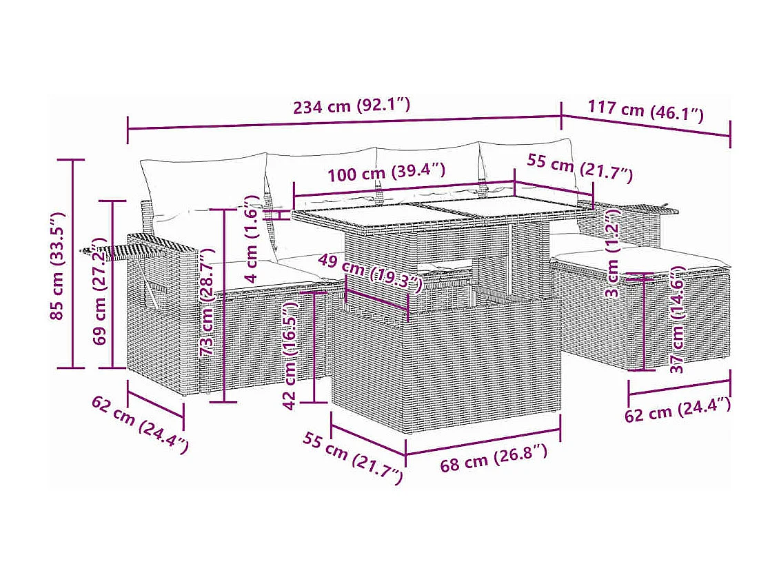 Salon de jardin 6 pcs avec coussins gris résine tressée