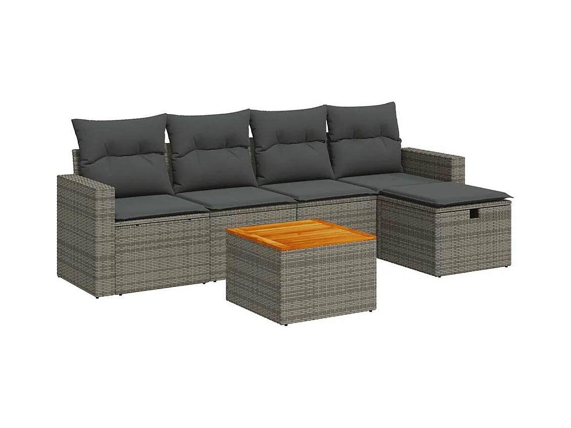 Salon de jardin 6 pcs avec coussins gris résine tressée