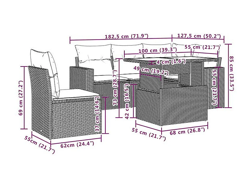 Salon de jardin 6 pcs avec coussins gris résine tressée