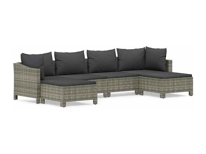 Salon de jardin 6 pcs avec coussins Gris Résine tressée
