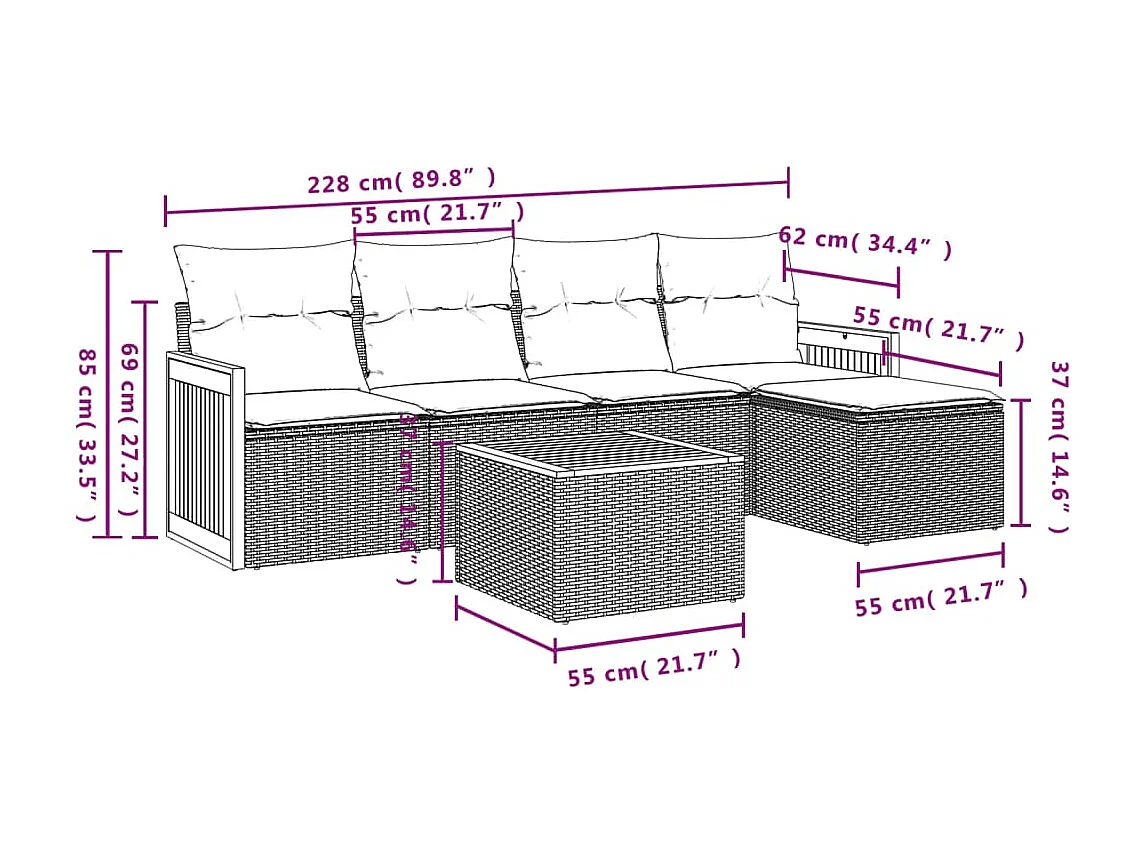 Salon de jardin 6 pcs avec coussins gris résine tressée