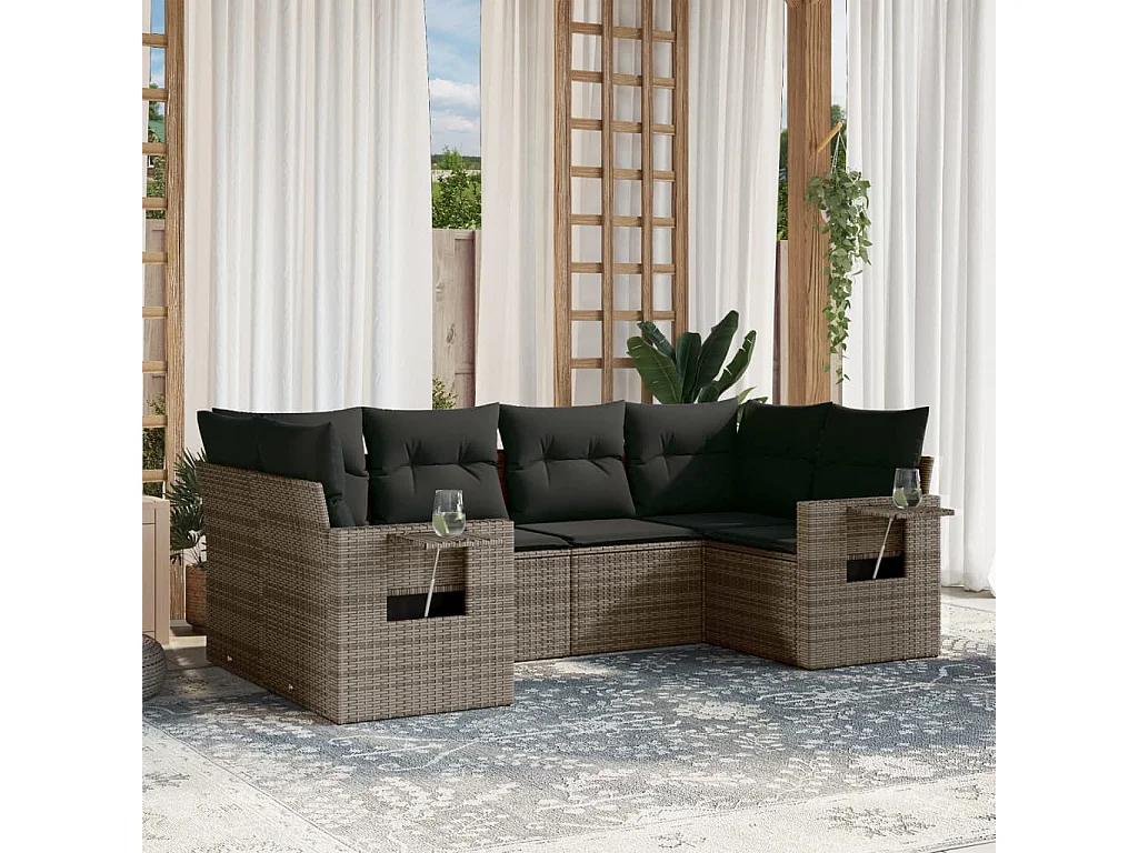 Salon de jardin 6 pcs avec coussins gris résine tressée