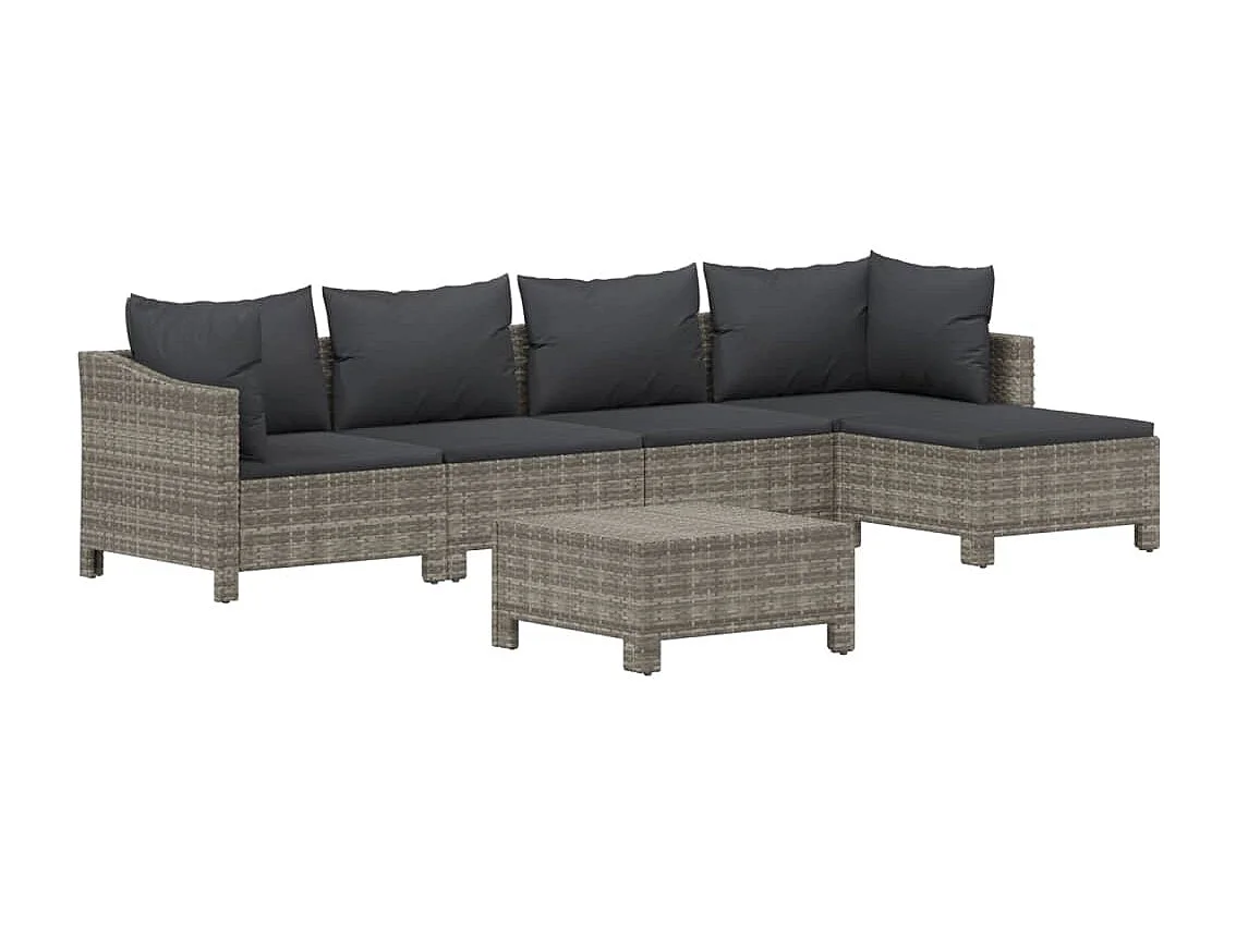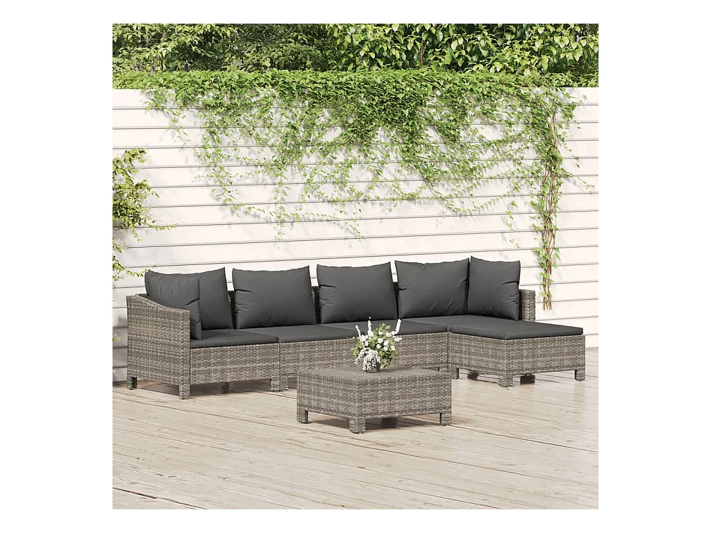 Salon de jardin 6 pcs avec coussins Gris Résine tressée