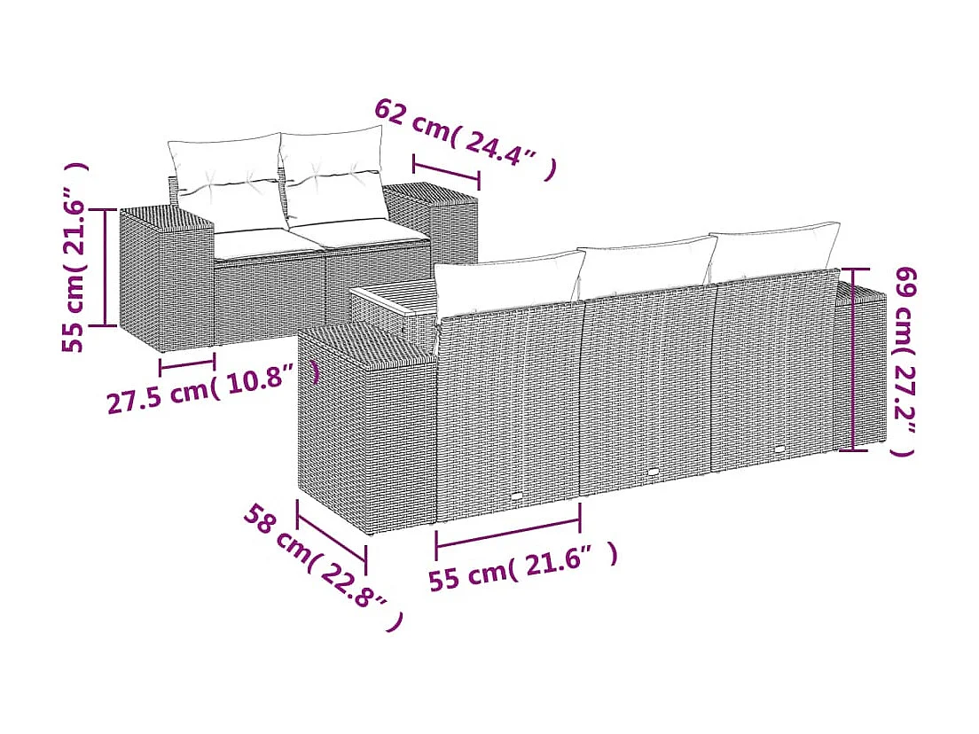 Salon de jardin 6 pcs avec coussins gris résine tressée