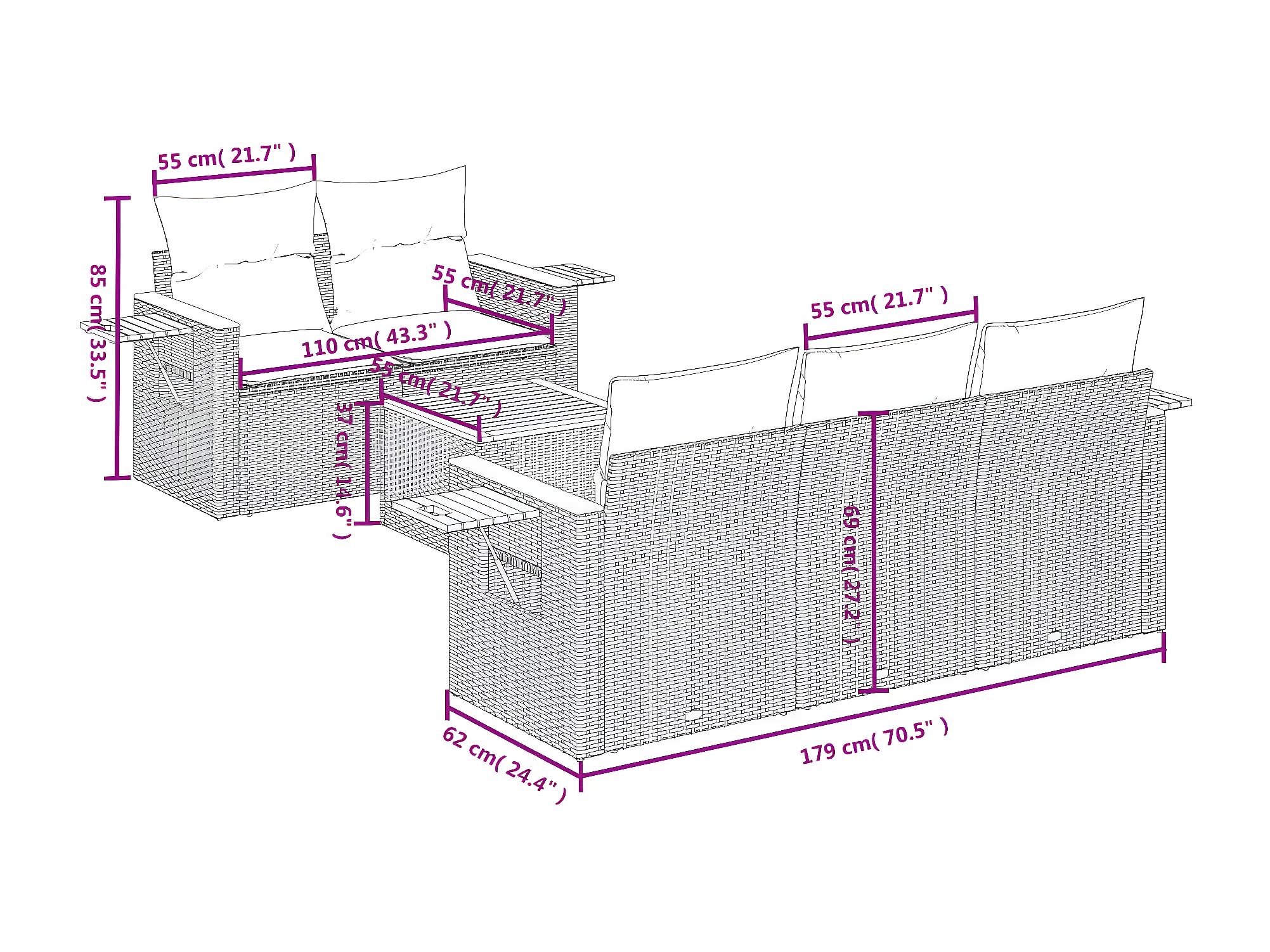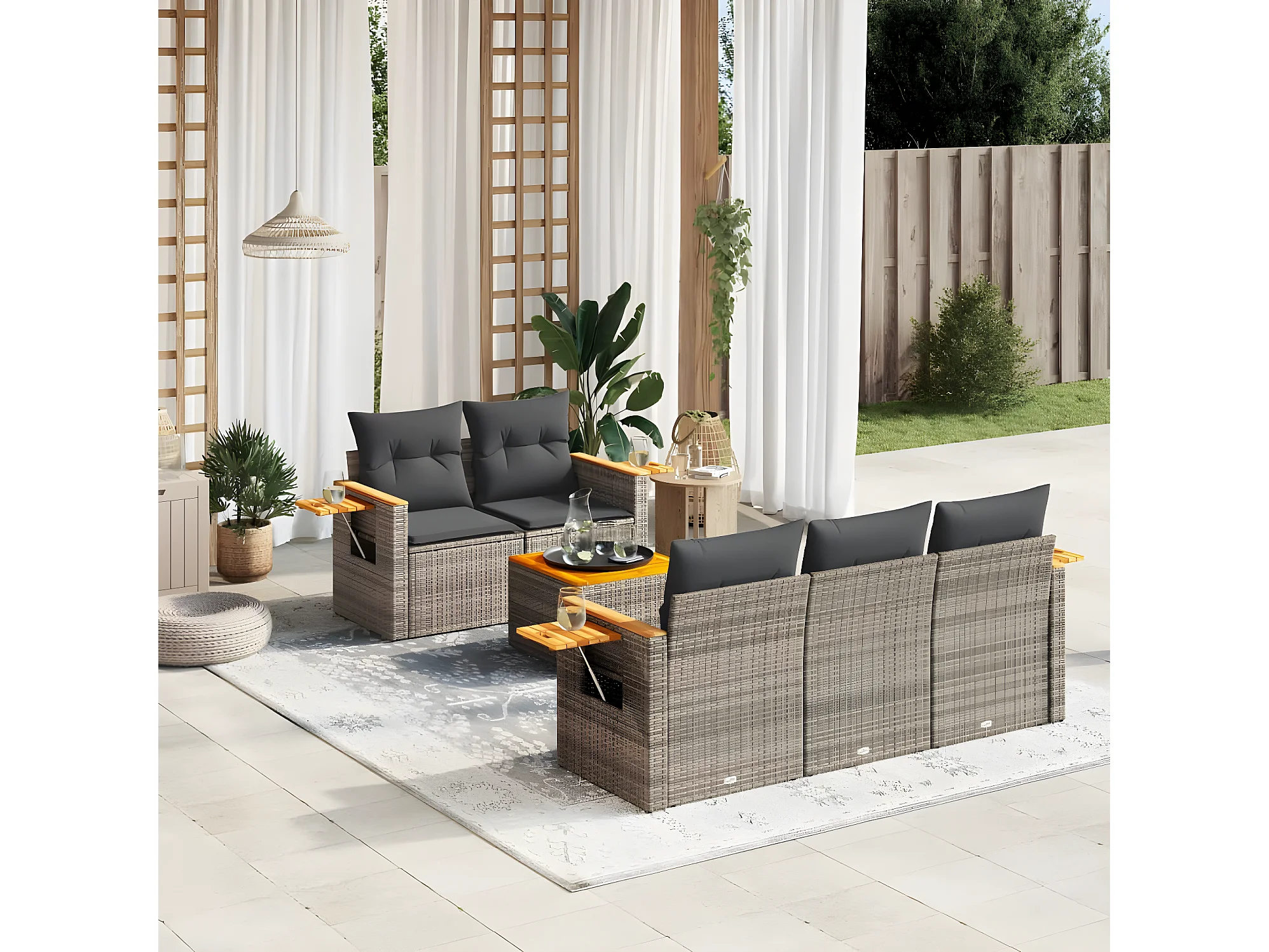 Salon de jardin 6 pcs avec coussins gris résine tressée