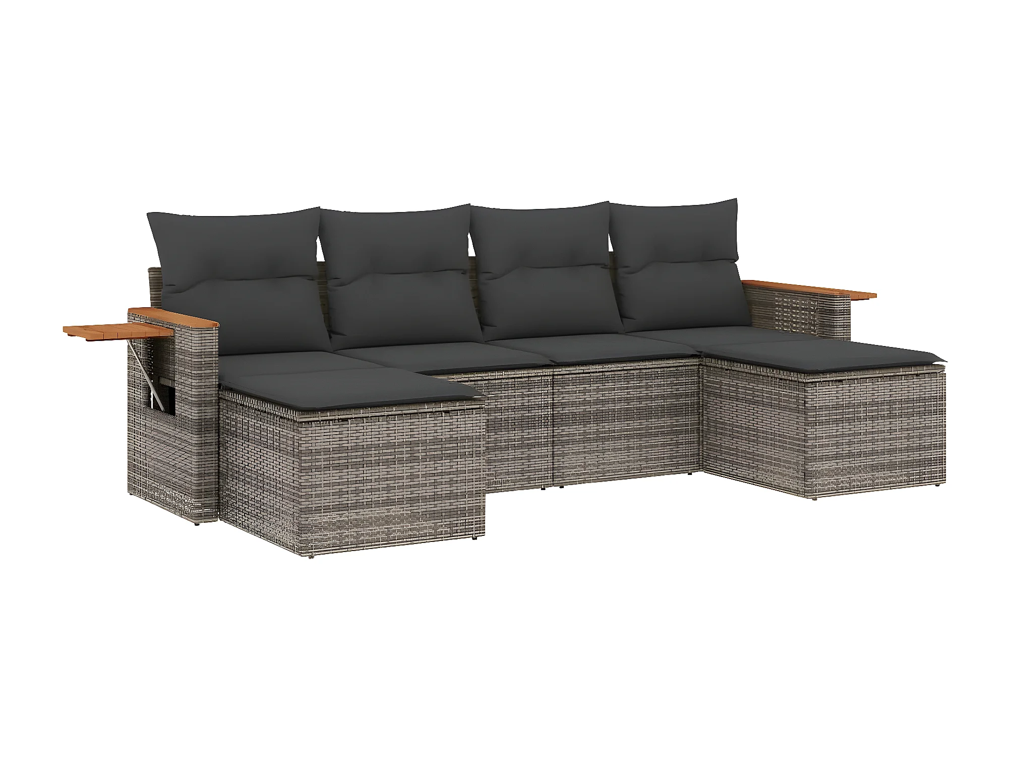Salon de jardin 6 pcs avec coussins gris résine tressée