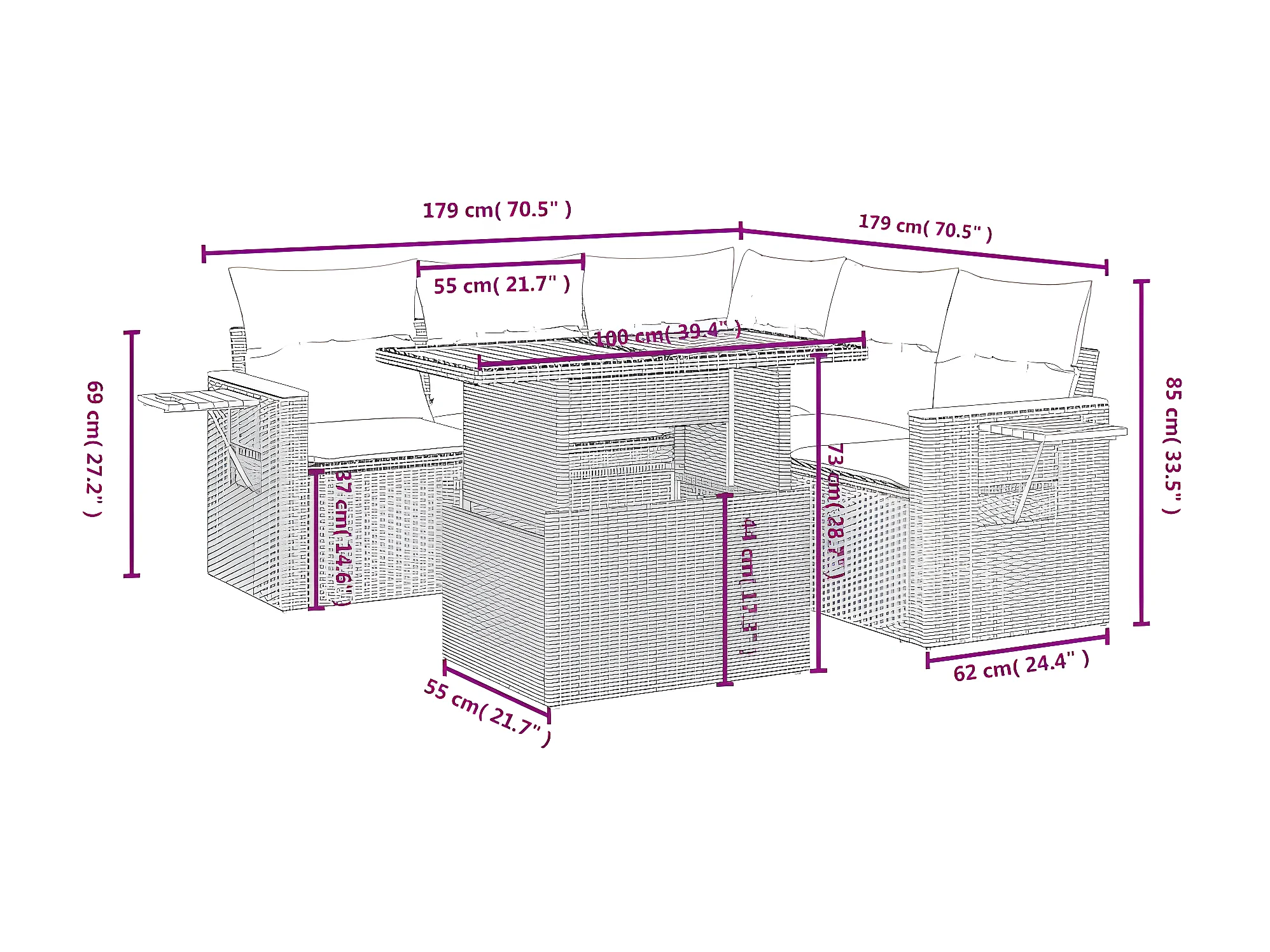 Salon de jardin 6 pcs avec coussins gris résine tressée