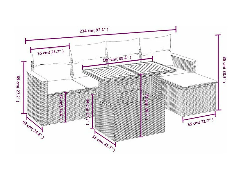 Salon de jardin 6 pcs avec coussins gris résine tressée