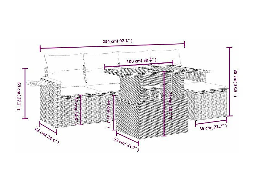 Salon de jardin 6 pcs avec coussins gris résine tressée