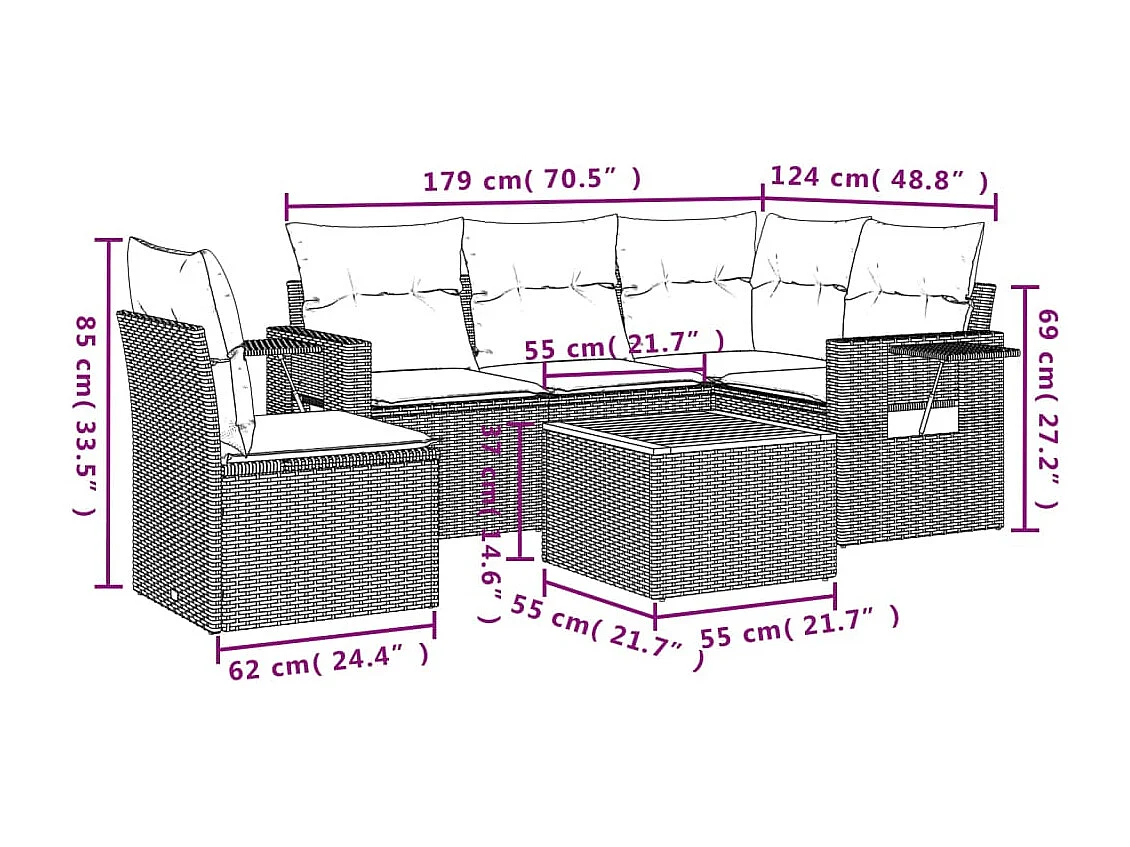 Salon de jardin 6 pcs avec coussins gris résine tressée