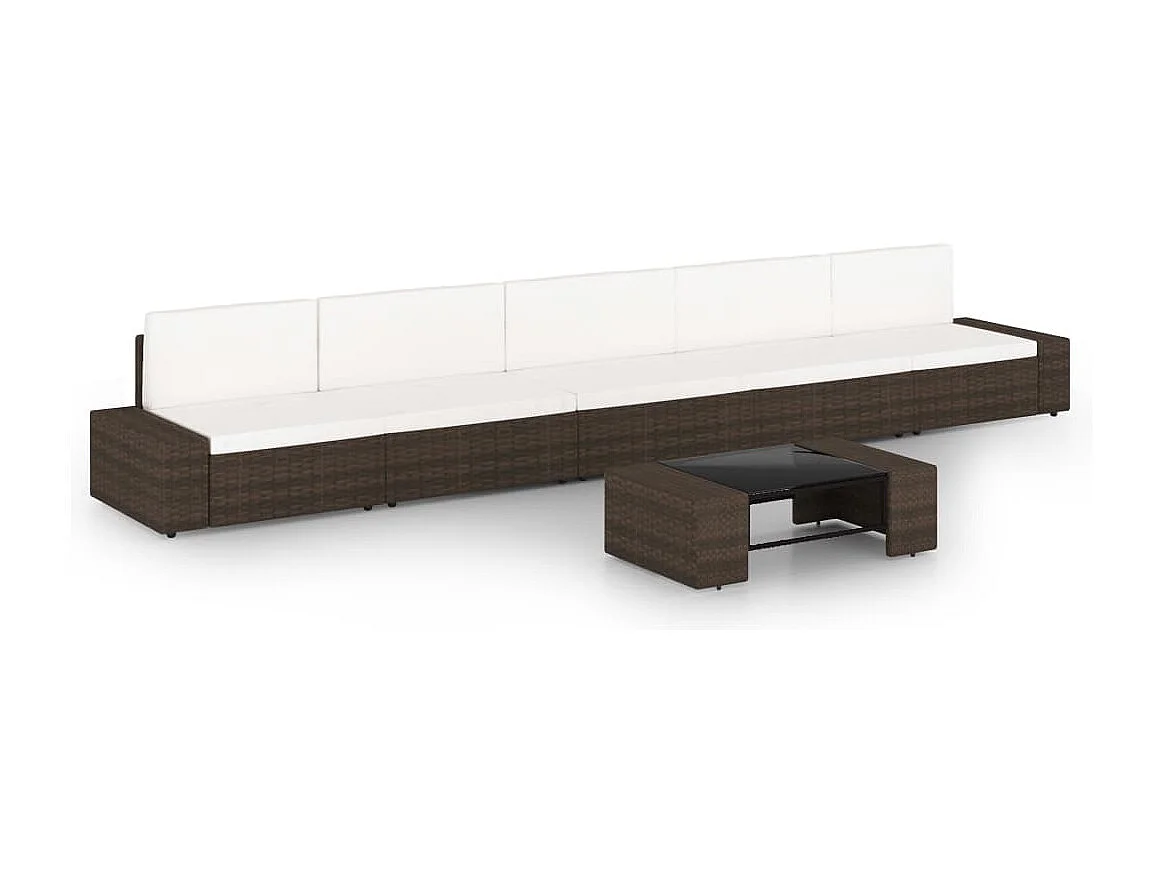 Salon de jardin 6 pcs avec coussins Marron Résine tressée 2