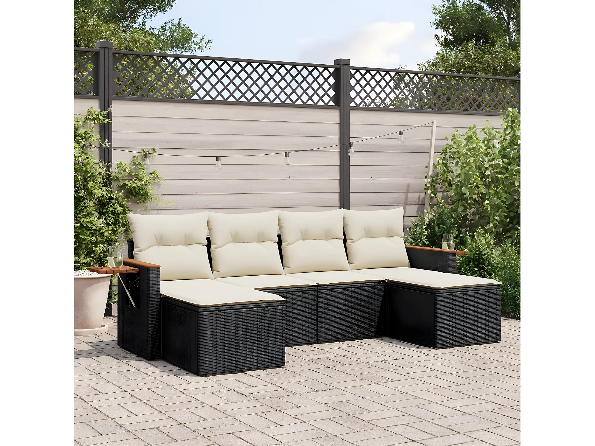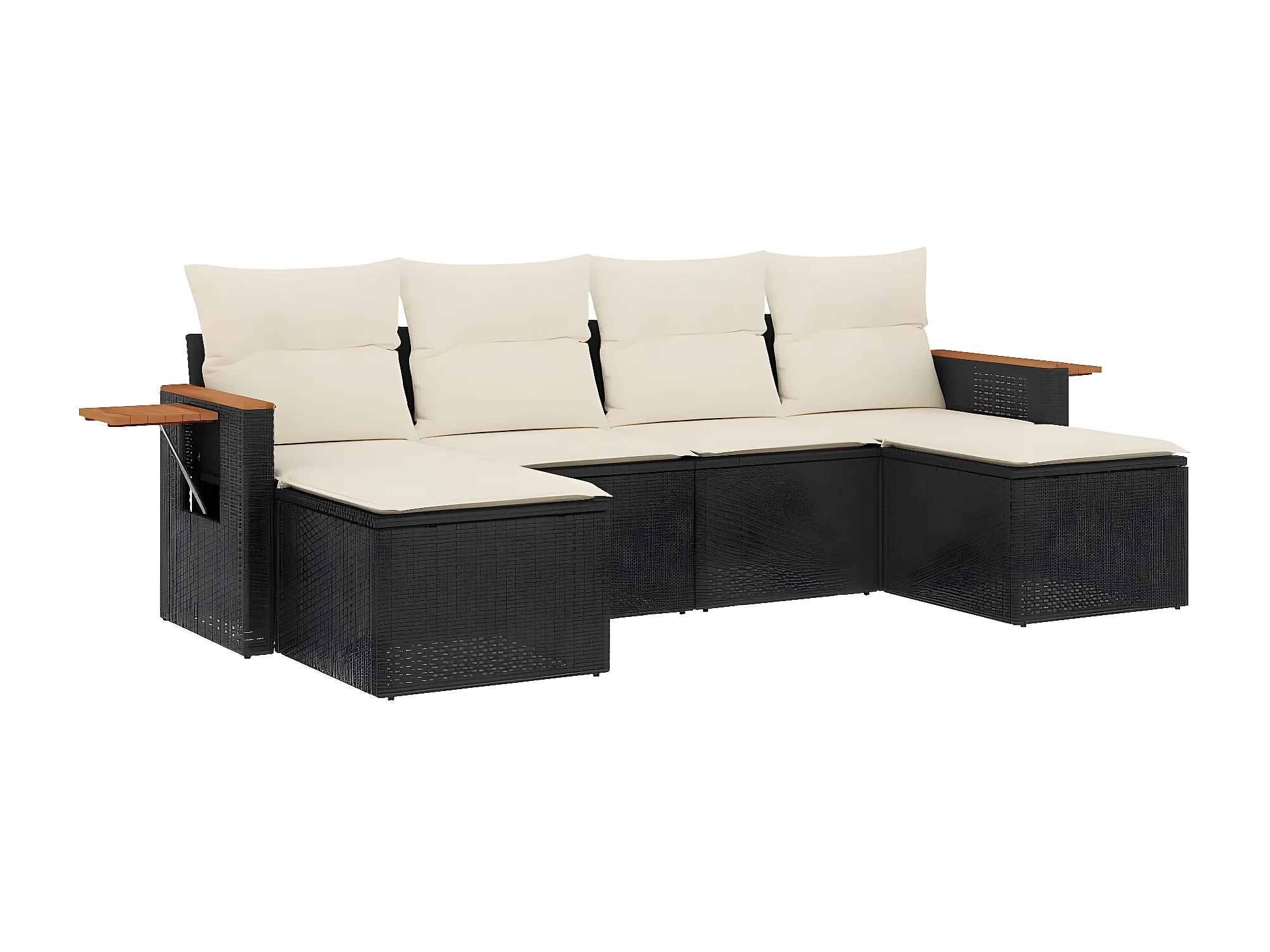 Salon de jardin 6 pcs avec coussins noir résine tressée